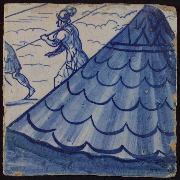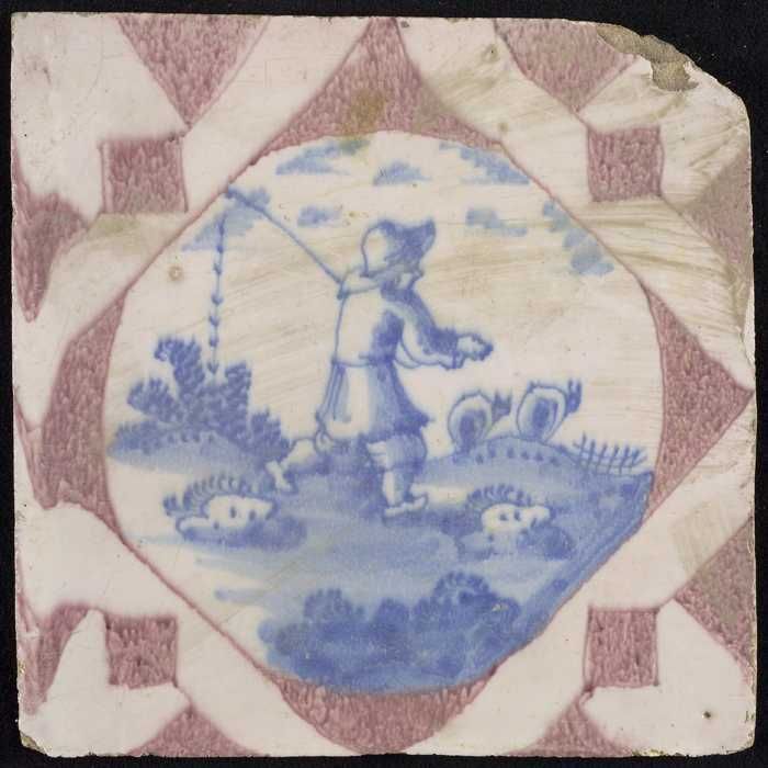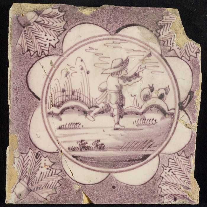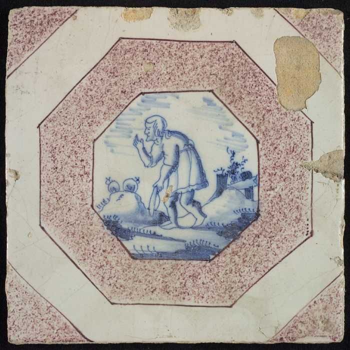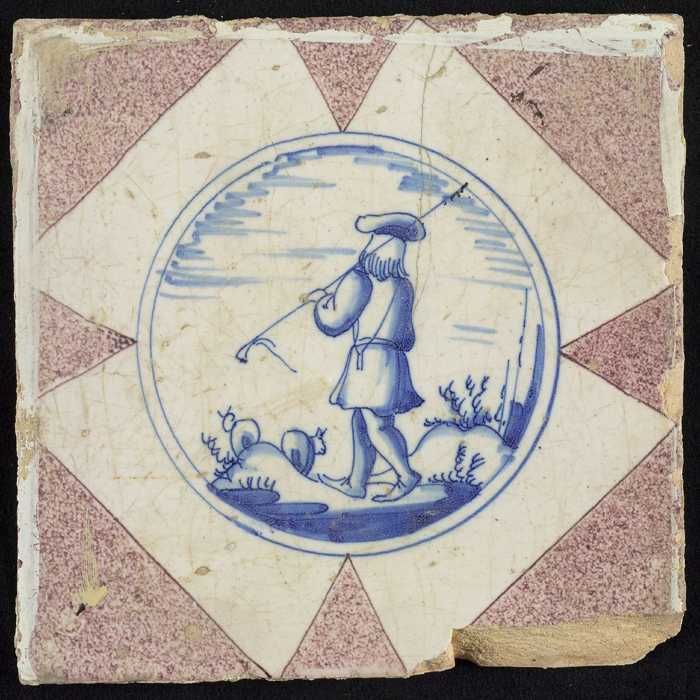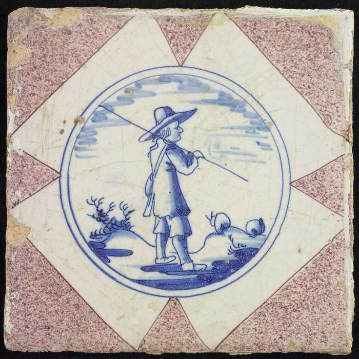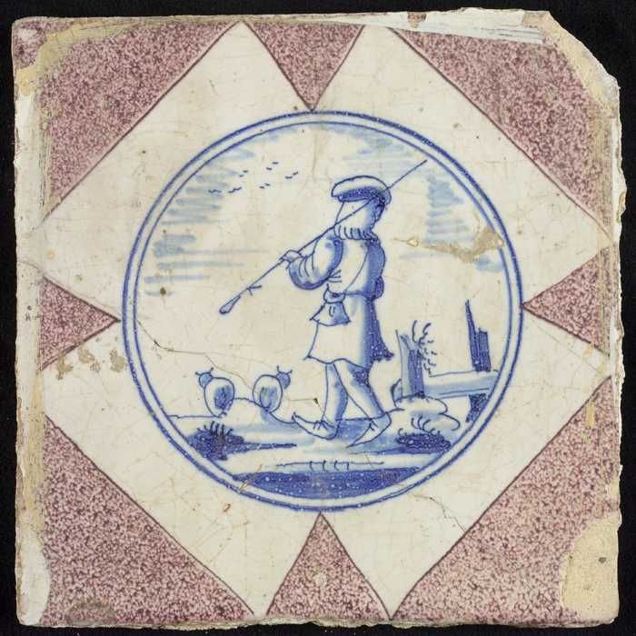 Figuurtegel, herder met staf op de schouder