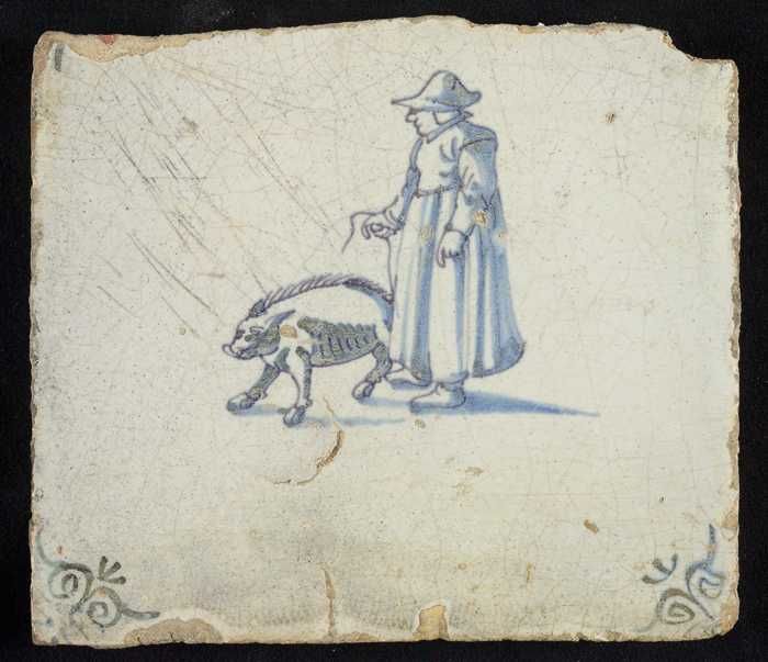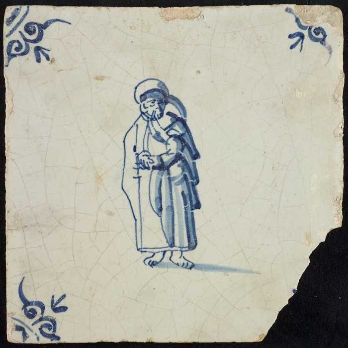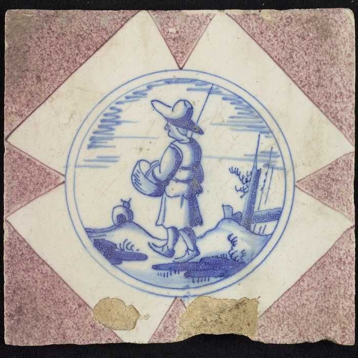 Figuurtegel, herder met mand en staf