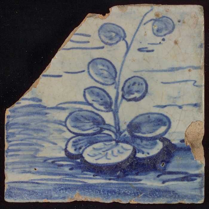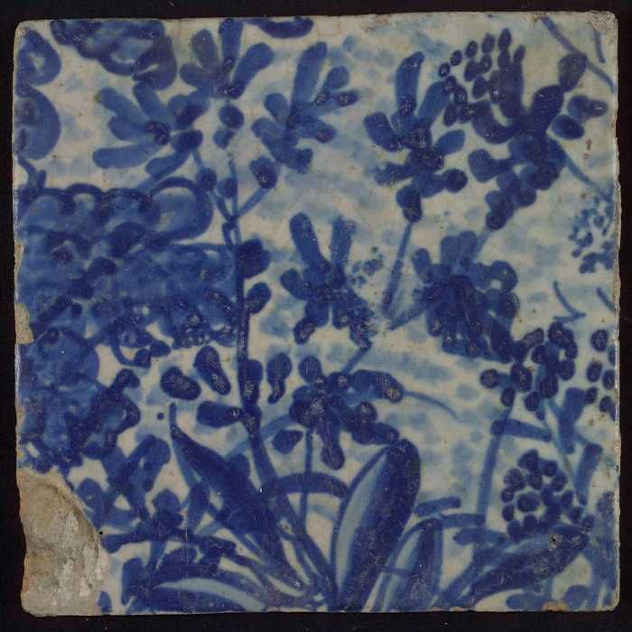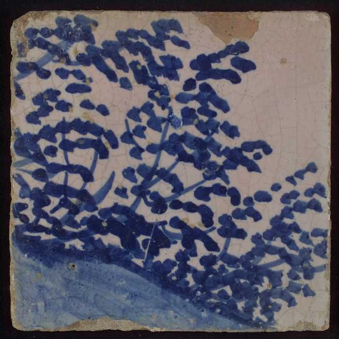 Tegel met blauw plantje