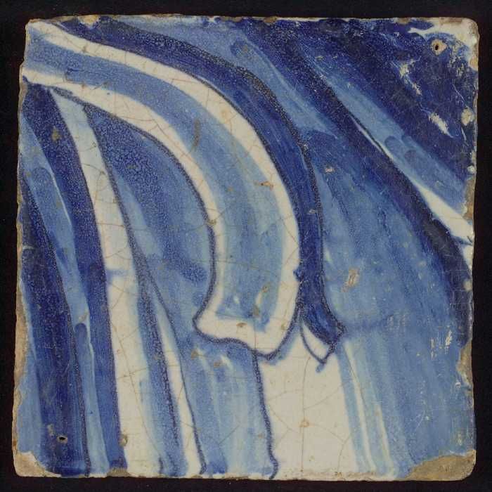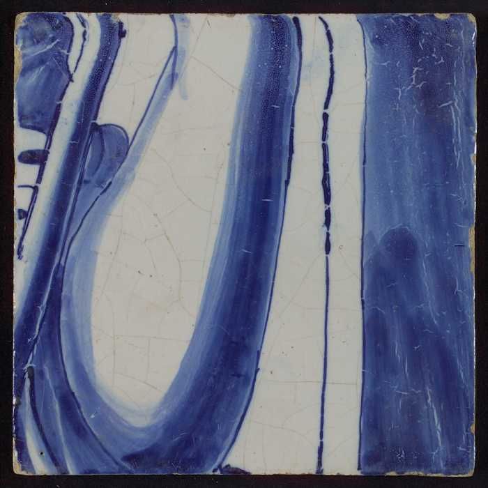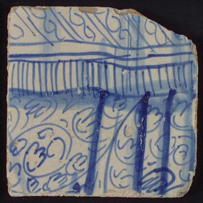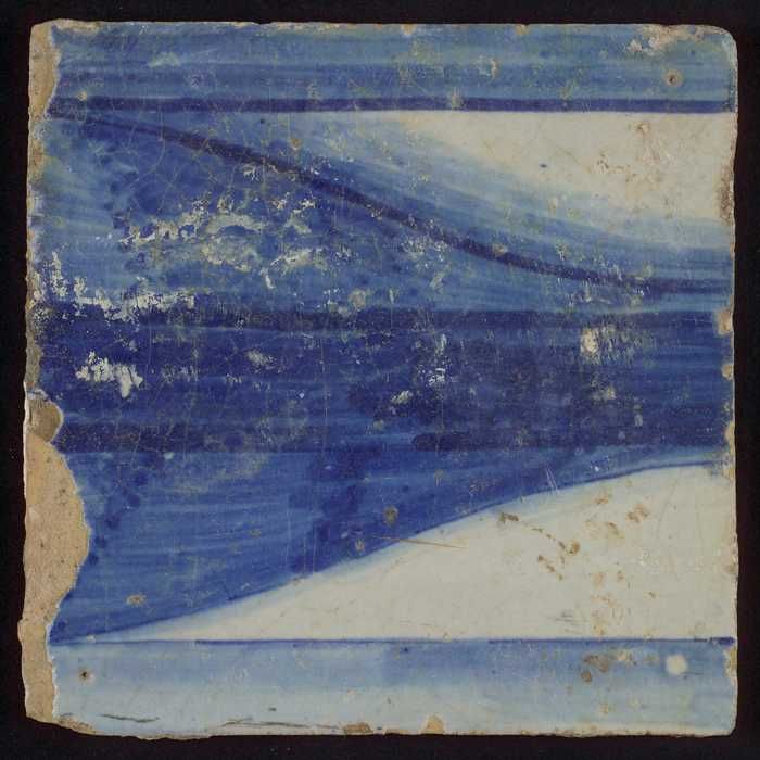 Tegel met blauwe voet en horizontale lijnen