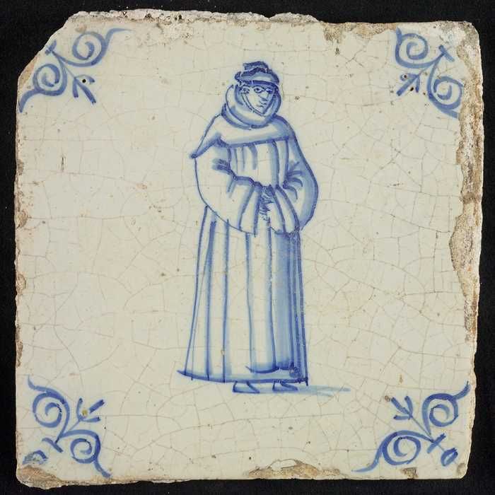 Figuurtegel, Franciscaner (?) monnik, hoekmotief oss...