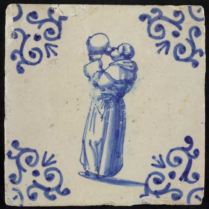 Figuurtegel, Franciscaner (?) monnik met kruik, hoek...