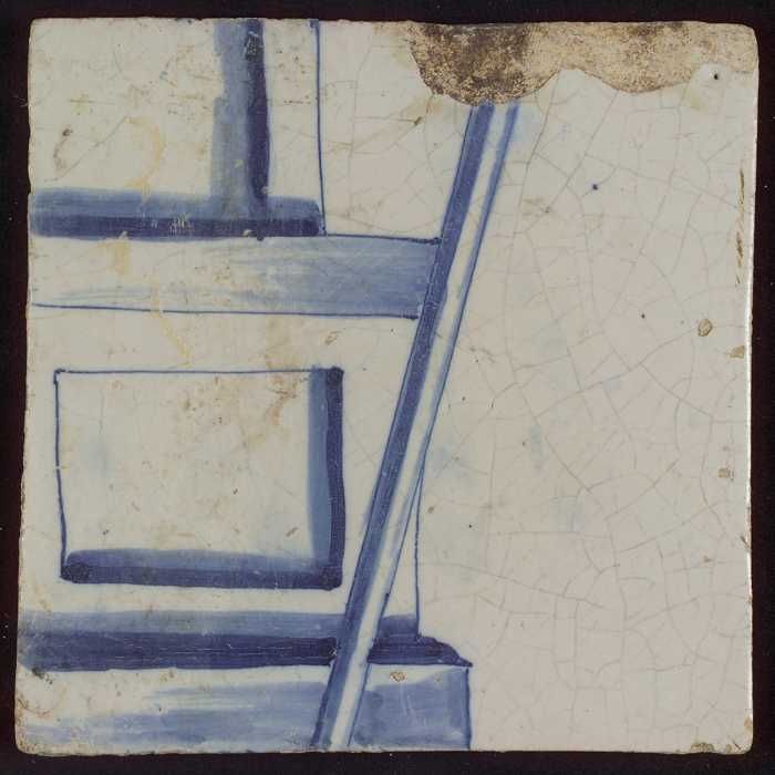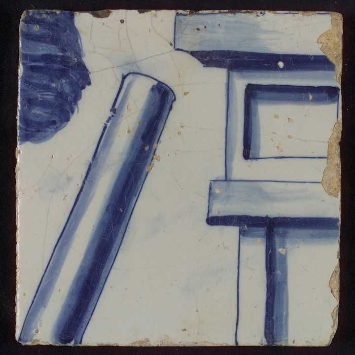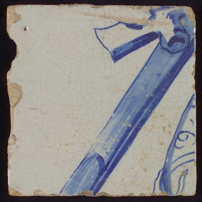 Tegel met blauwe diagonale balk (geweer?)
