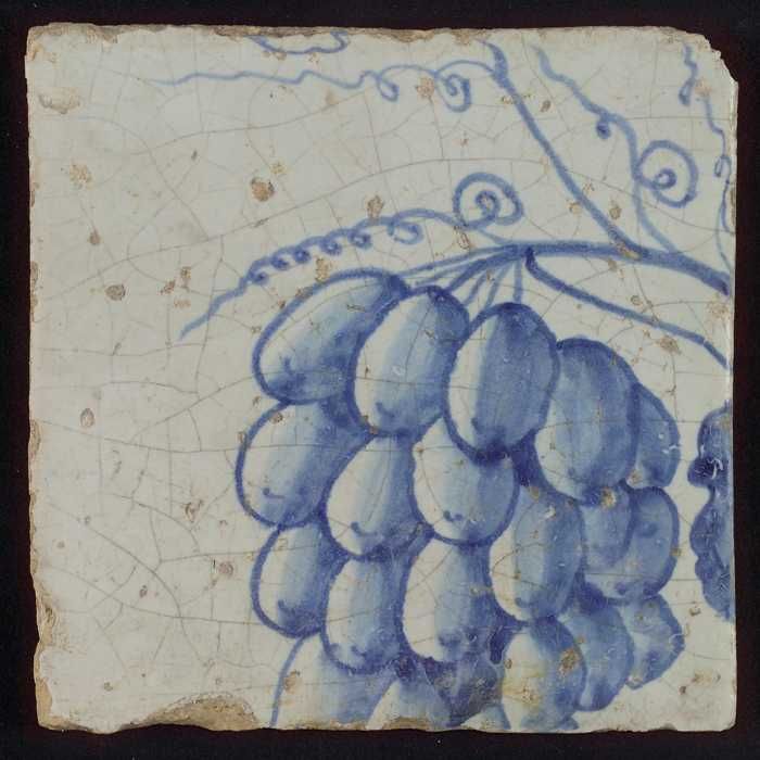 Tegel met blauwe tros druiven aan takje