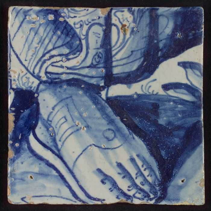 Tegel met blauwe voet met sandaal