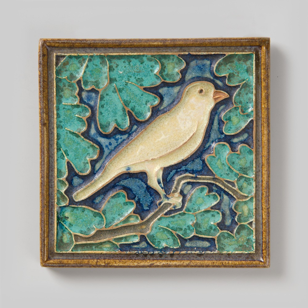 Tegel in cloisonné-techniek, met voorstelling: Kanar...