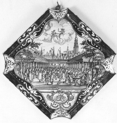 Plaque met interieur Korenbeurs