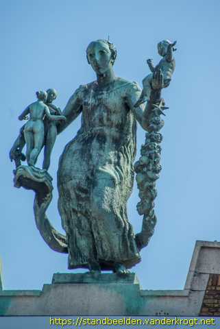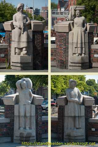 Scheepsbouwer, visvrouw, korendrager en koopvrouw