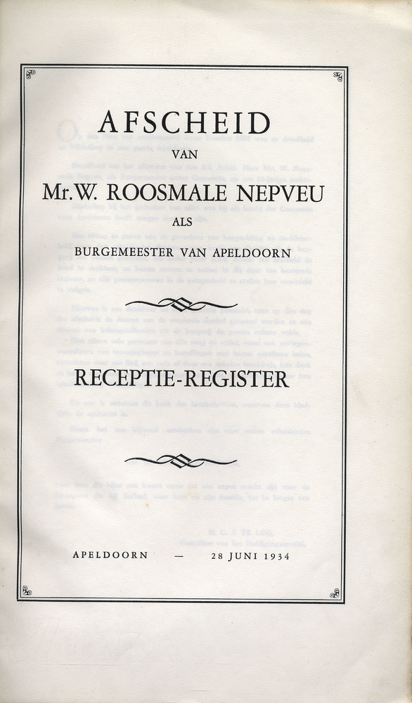 Afscheid van mr. W. Roosmale Nepveu als burgemeester...