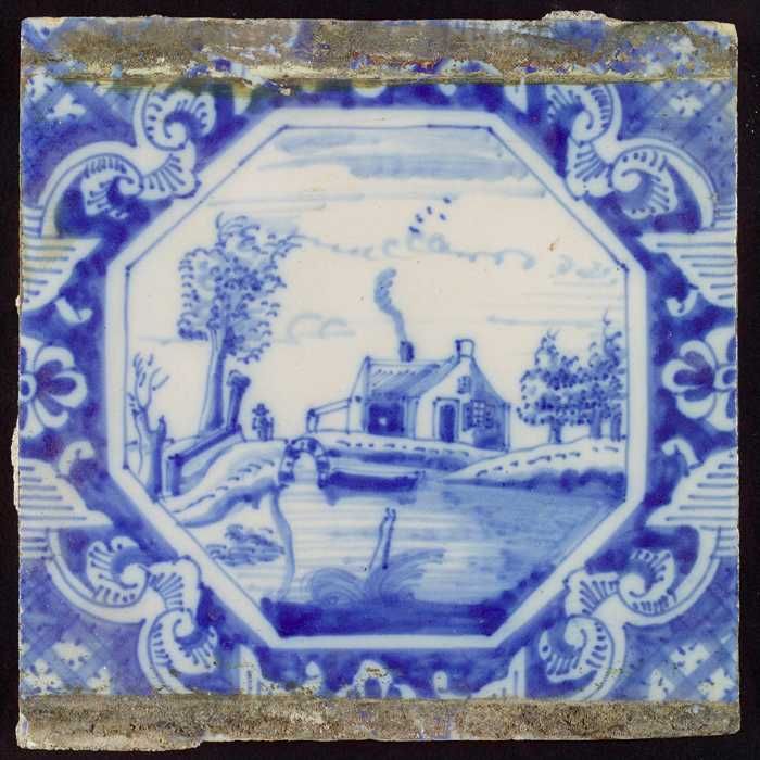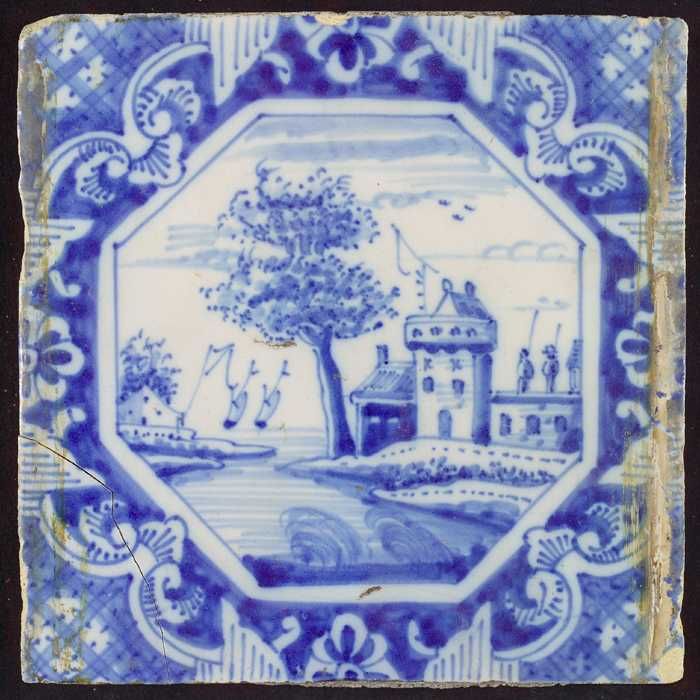 Tegel, blauw op wit, openluchtje, op heuvel stadsmuu...
