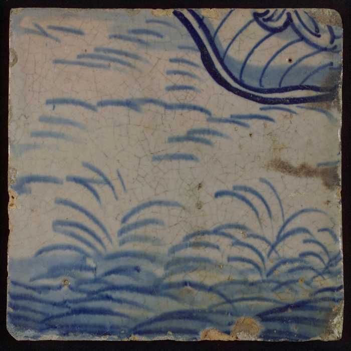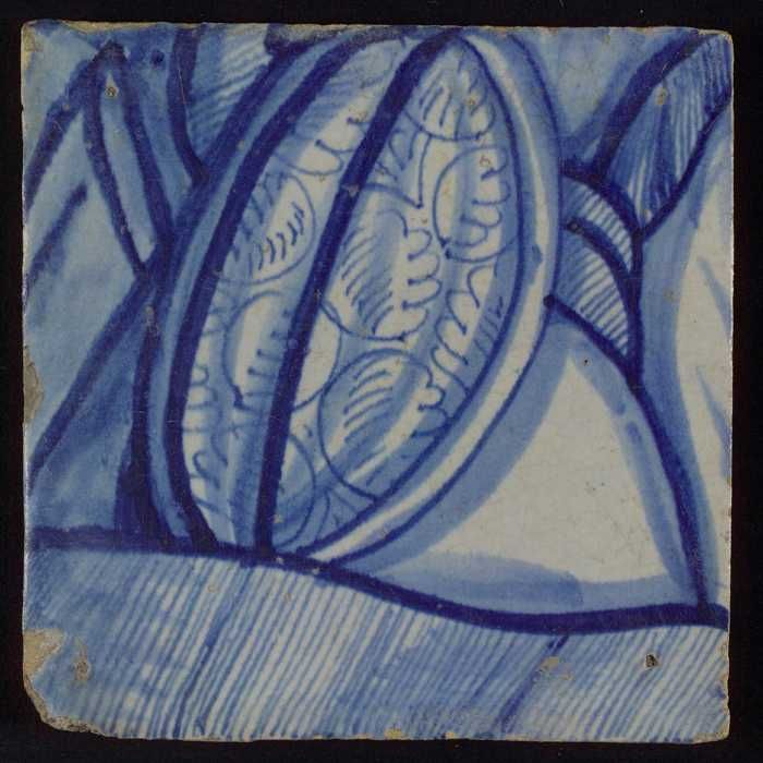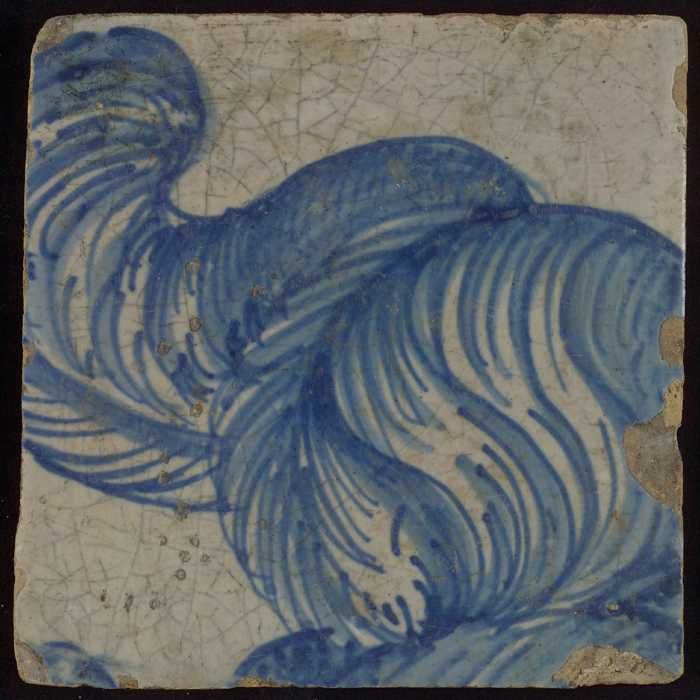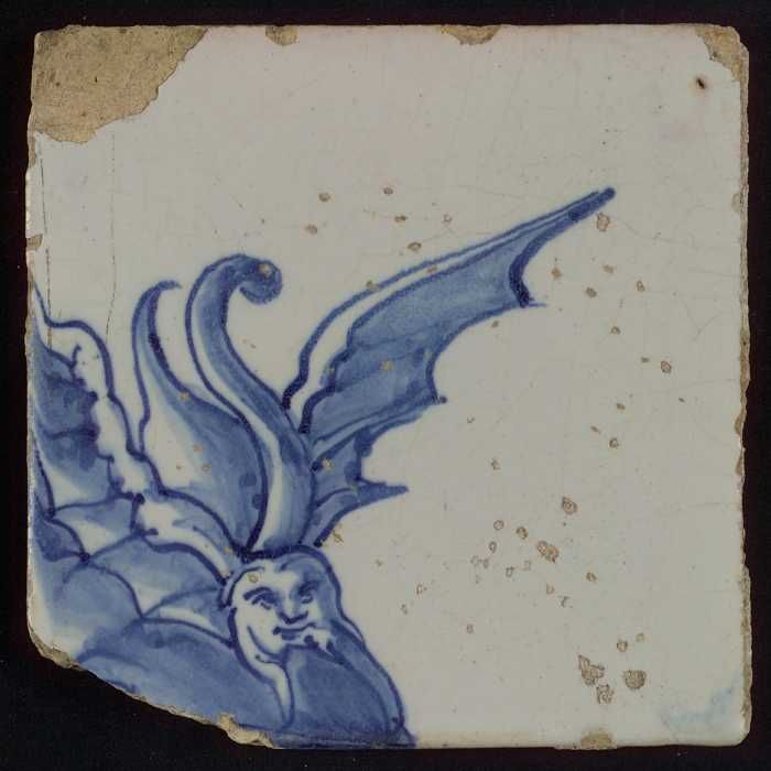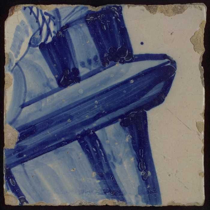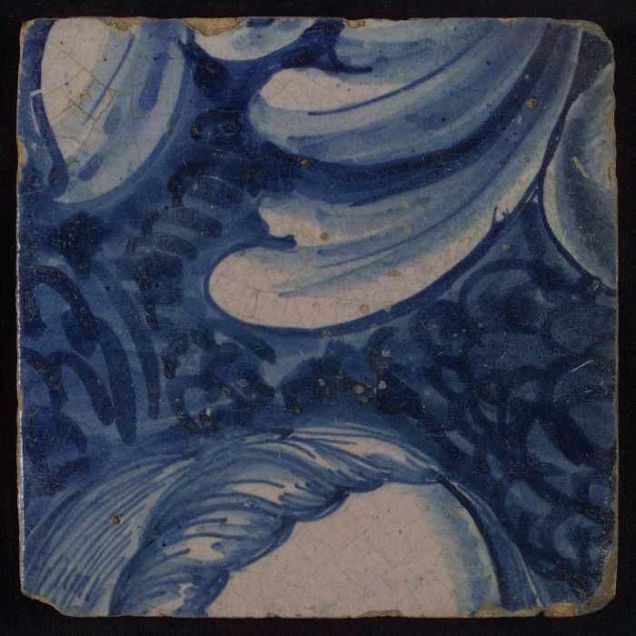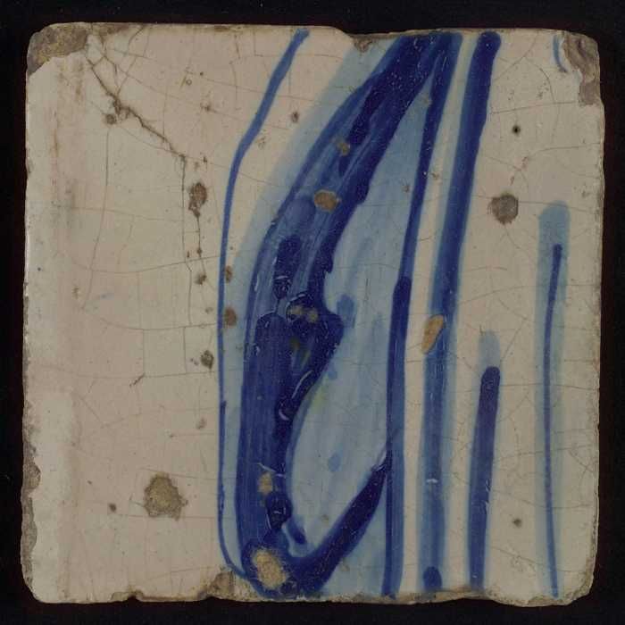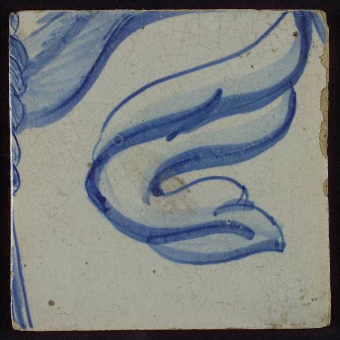 Tegel met blauwe tekening (deel van lijf met arm?)