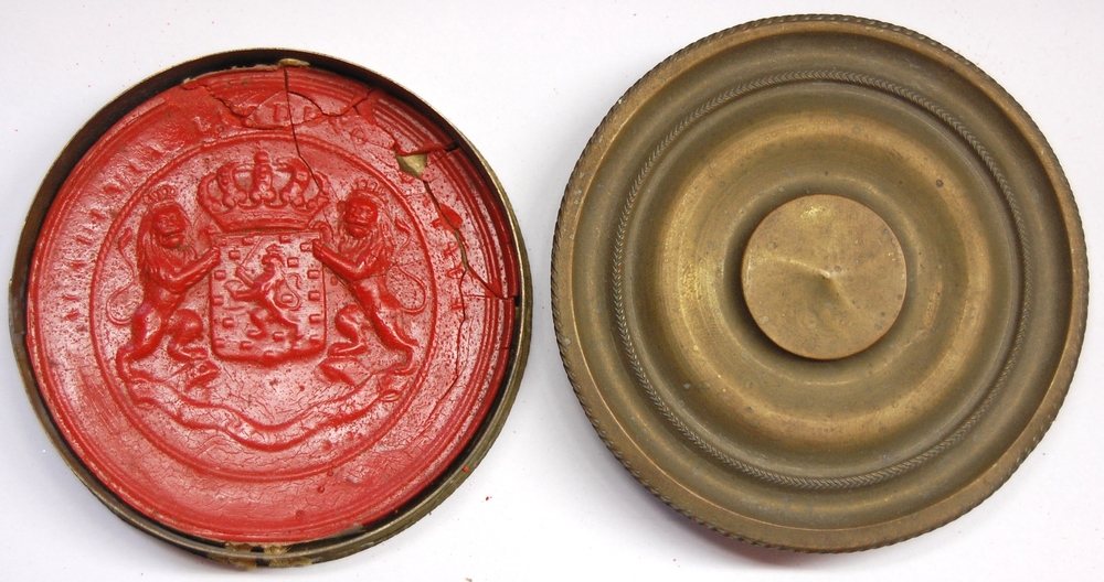 zegelafdruk. Lakafdruk zegelstempel Rijkswapen in ro...