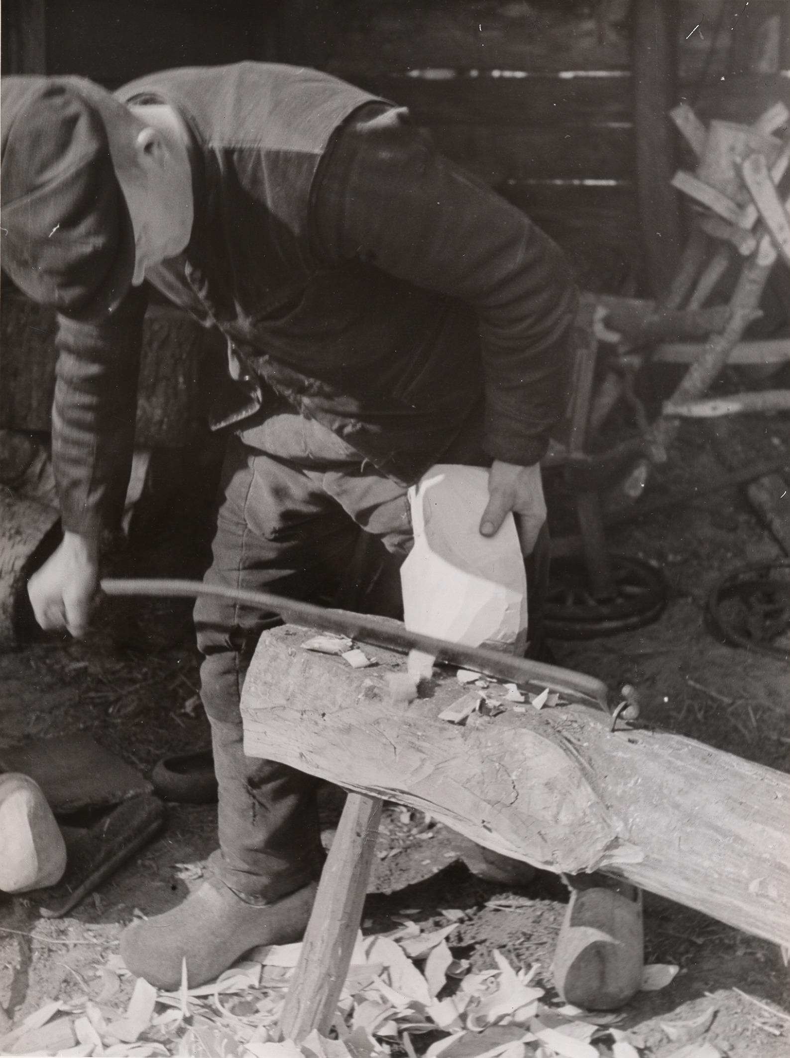 Klompenmakersgereedschap, Staphorst, 1944 (zwart-wit...