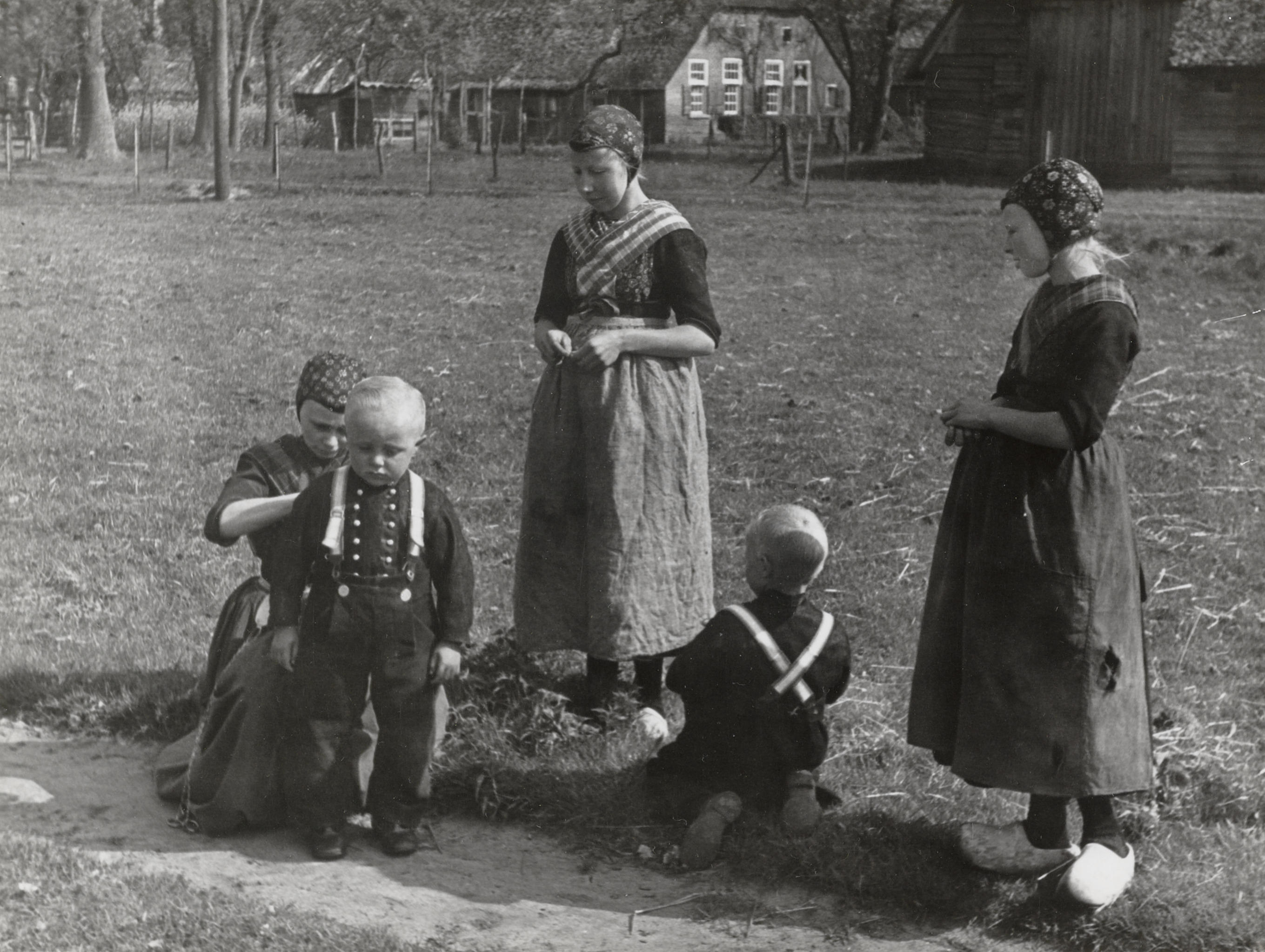 Vier 'kralenboordjes', Staphorst, 1944 (zwart-wit foto)