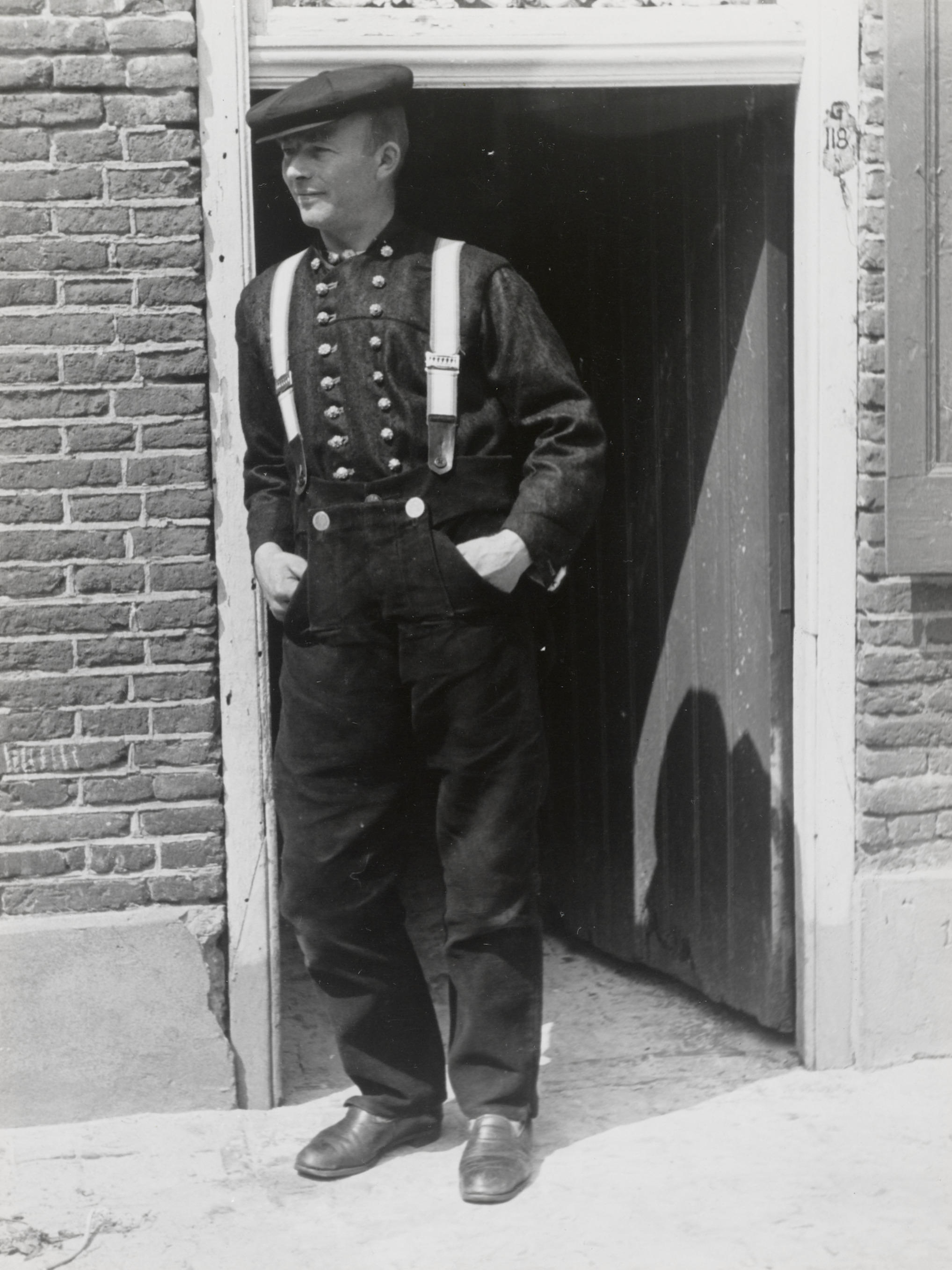 Jan Kooiker in opknapdracht, Staphorst, 1944 (zwart-...