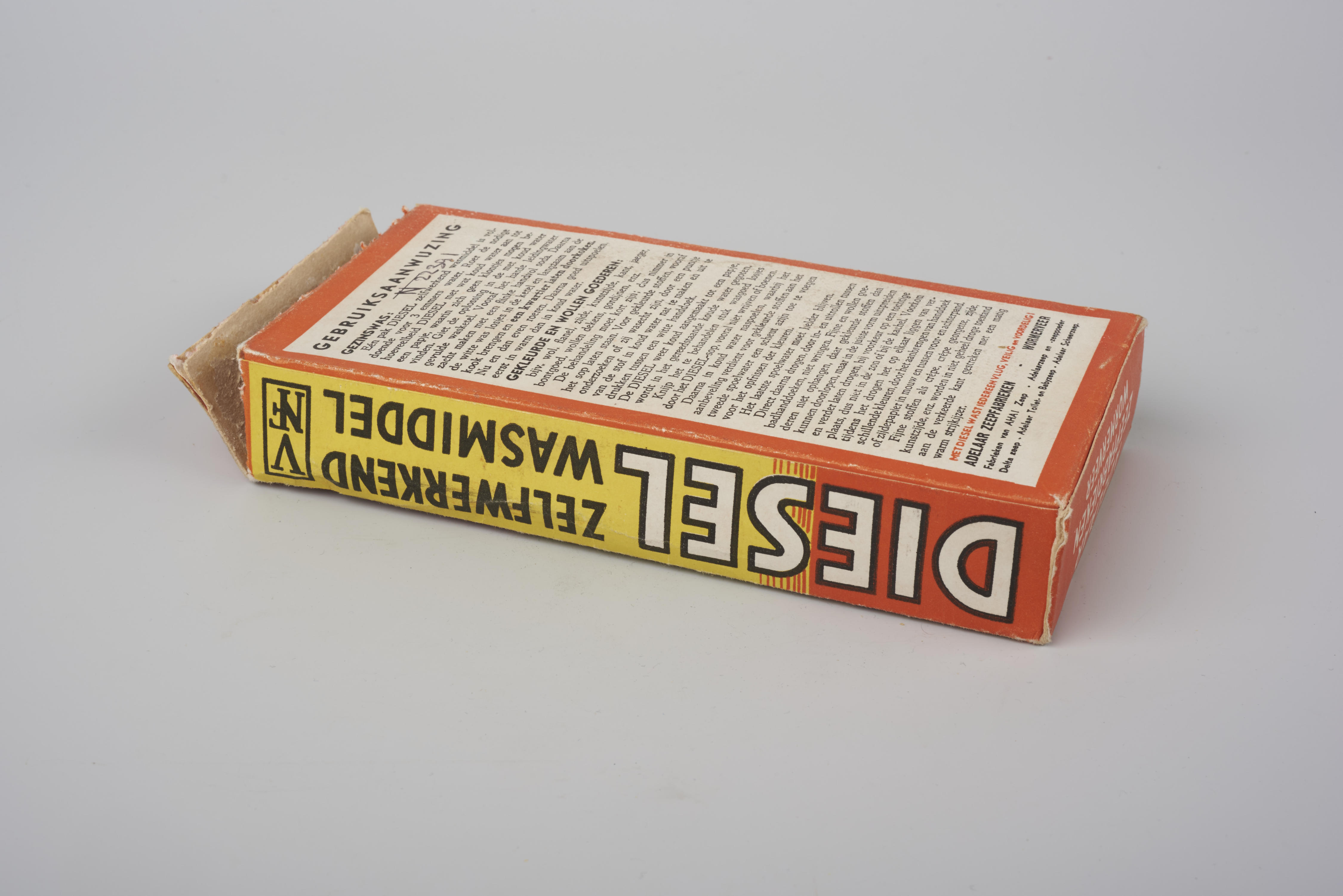 Verpakking van fles levertraan 'Sanostol', circa 1950