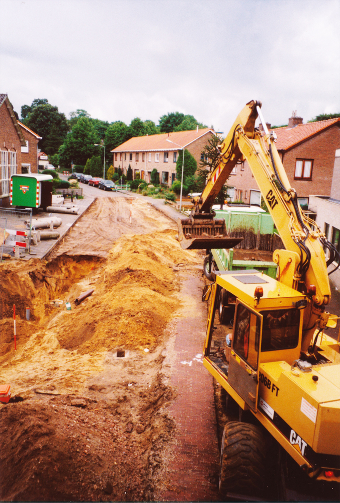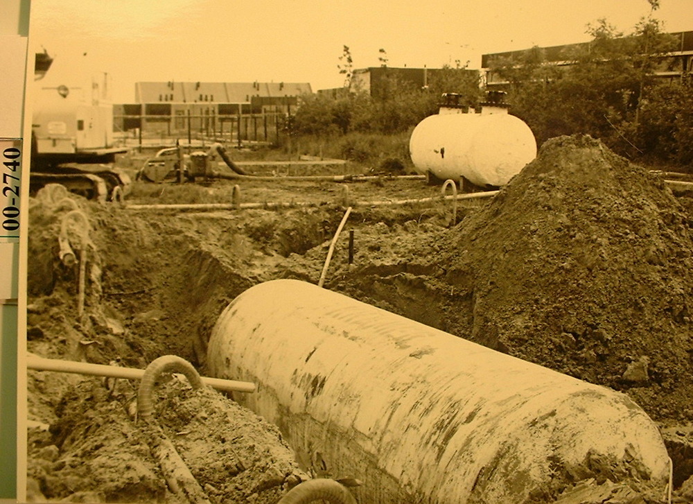 Het ingraven van een brandstoftank bij Benzinepomp v...