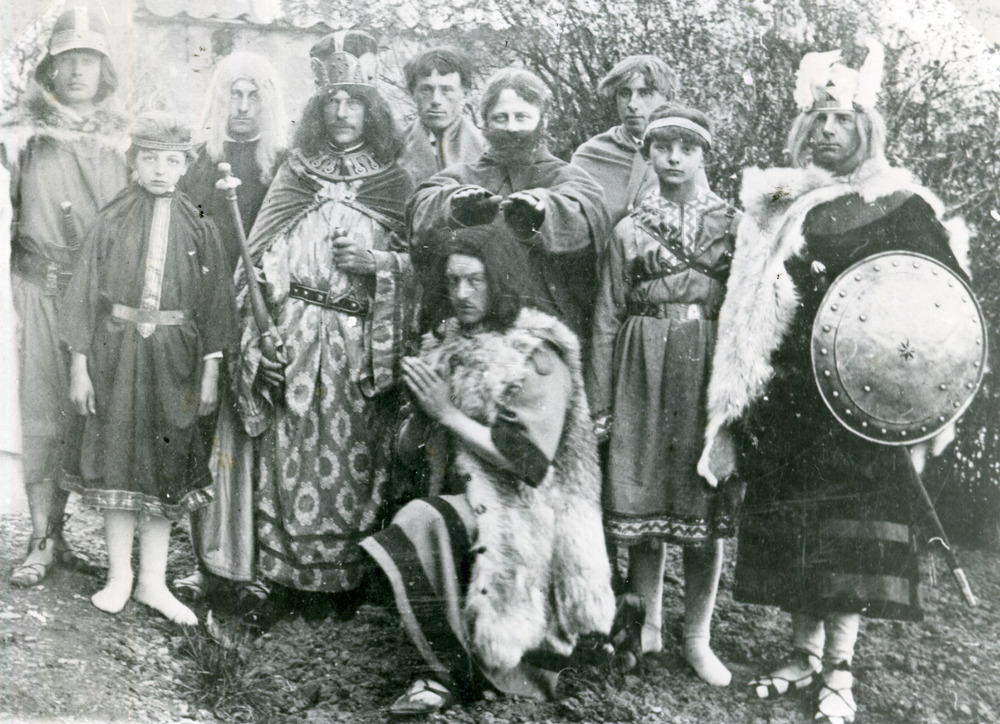 Zwart-wit foto van de toneelvereniging uit Herwen ca...