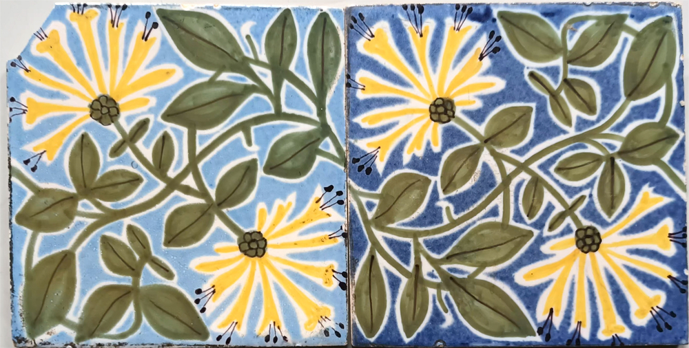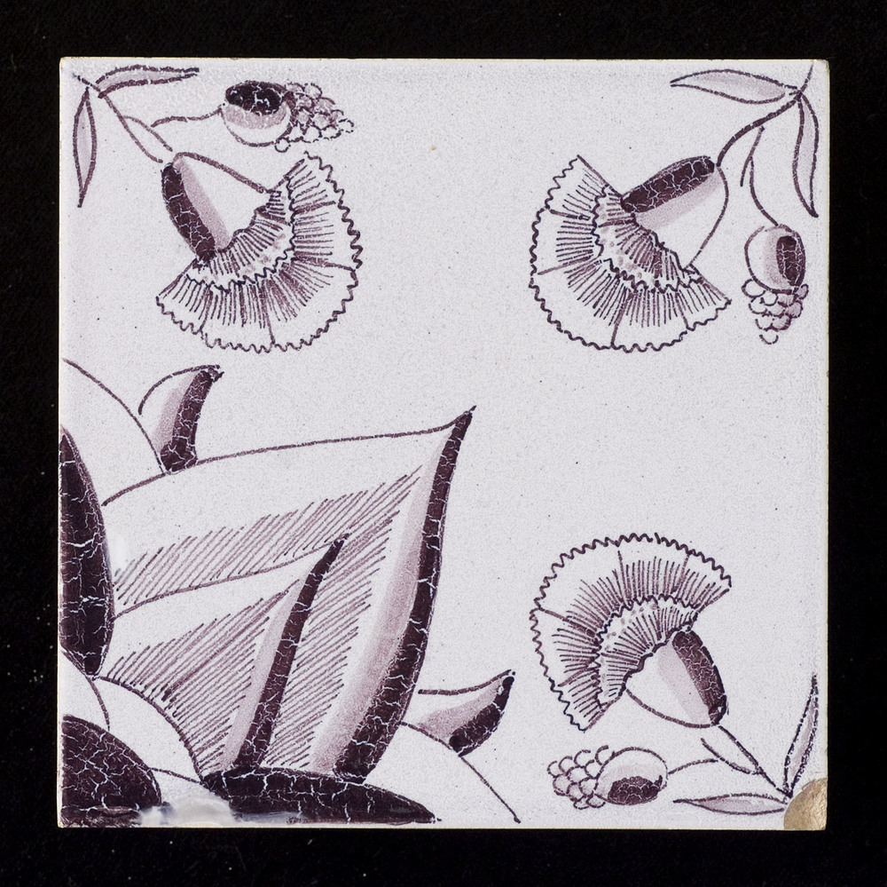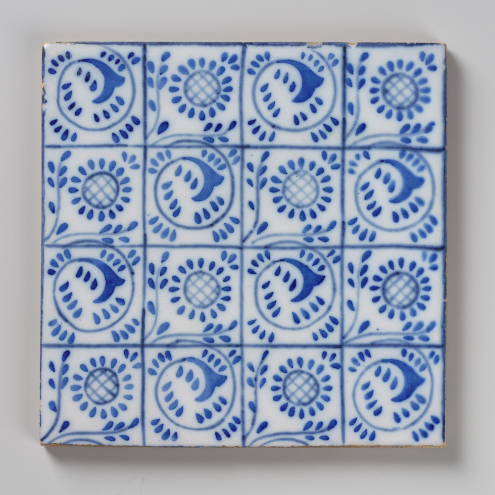 Tegel in onderglazuur, met voorstelling: ornament, d...