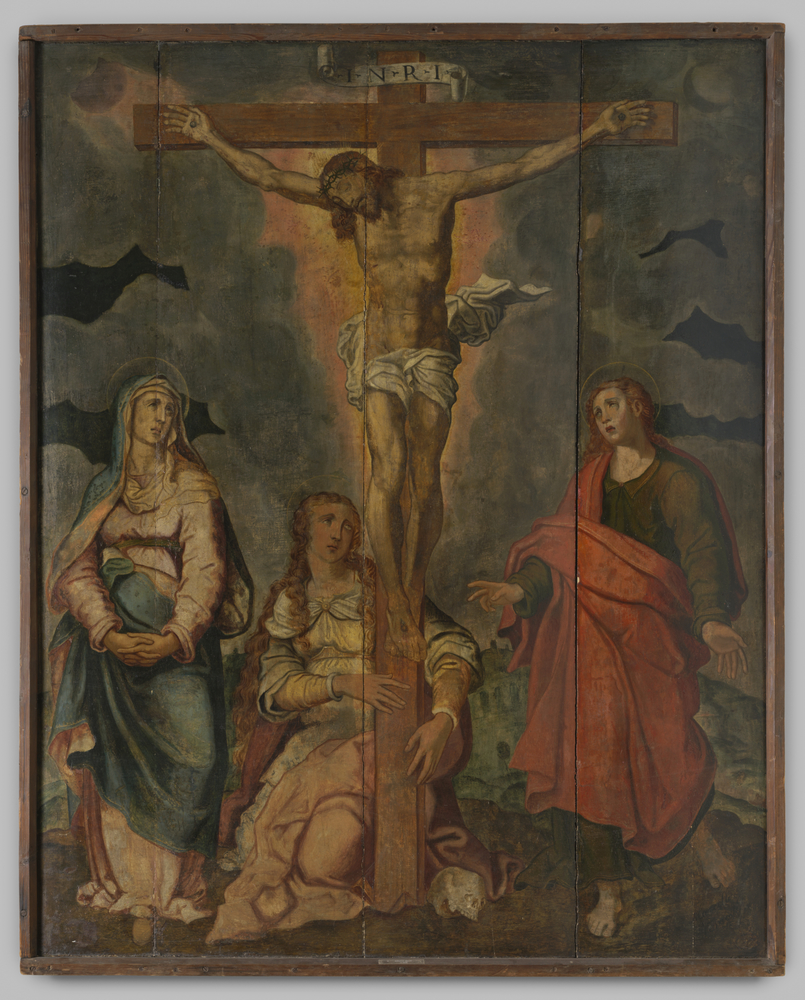 Paneelschildering "Kruisiging met Maria Magdalena en...