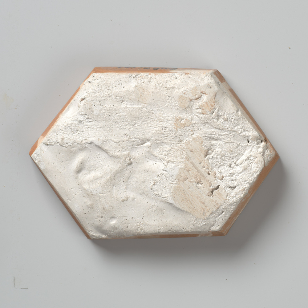 zeshoekige tegel van aardewerk, voorstellende orname...