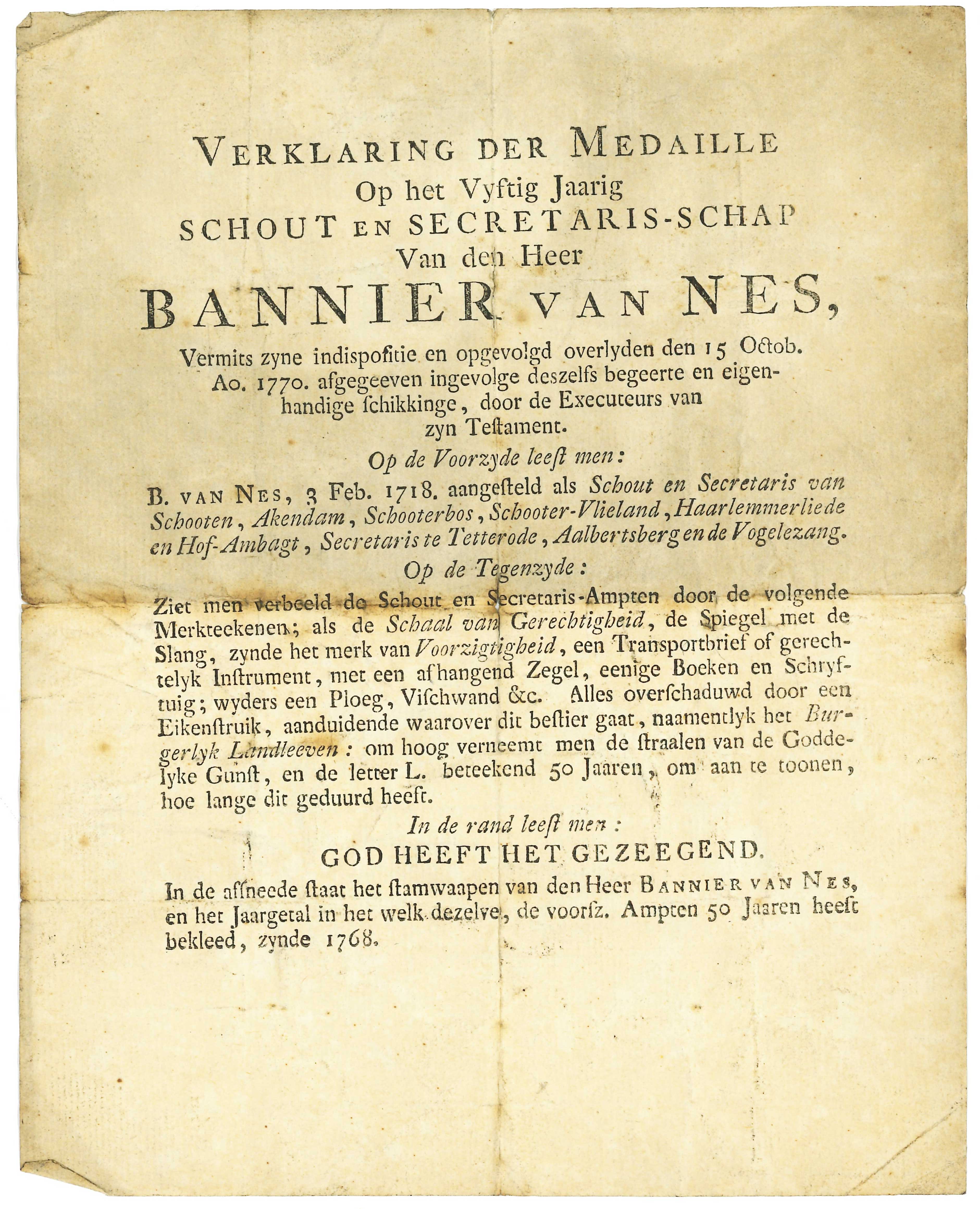 Papier-afdruk van keerzijde penning t.g.v. het eeuwf...