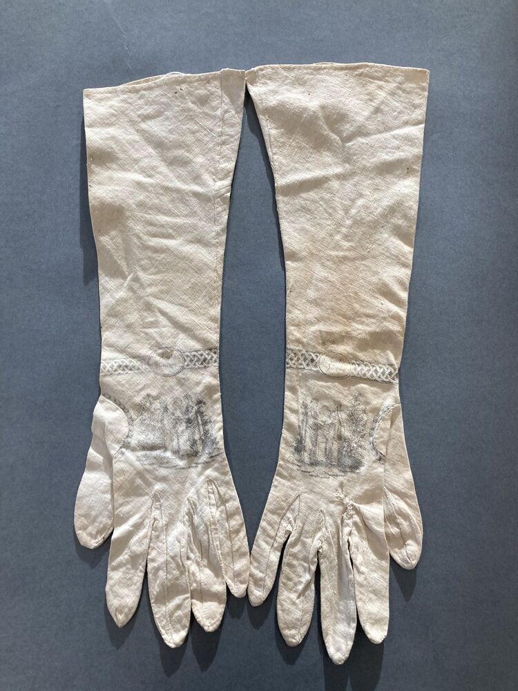 Paar lange dameshandschoenen van wit katoen bedrukt ...