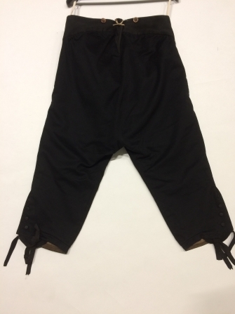 Mannenbroek van zwart laken, kniebroek met klepsluiting