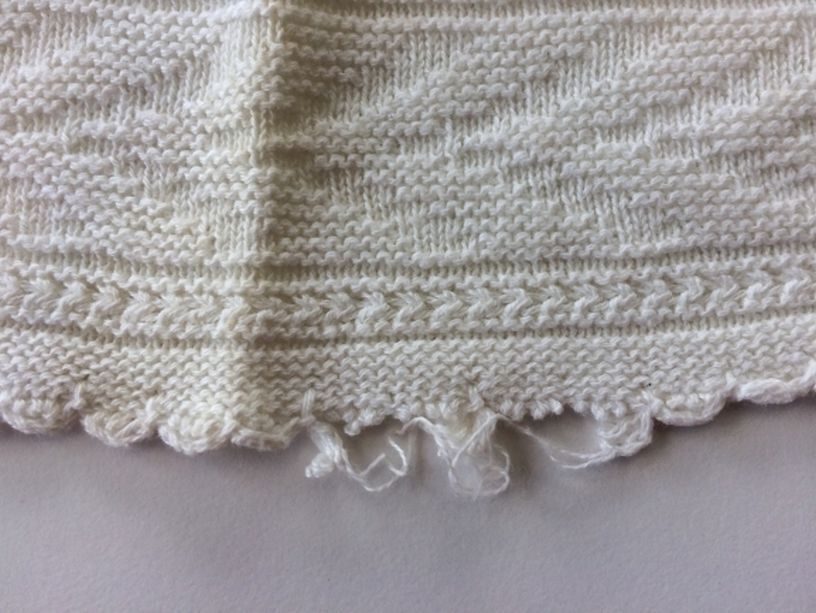 Babyjasje van ecrukleurige wol, op de voorkant drie ...