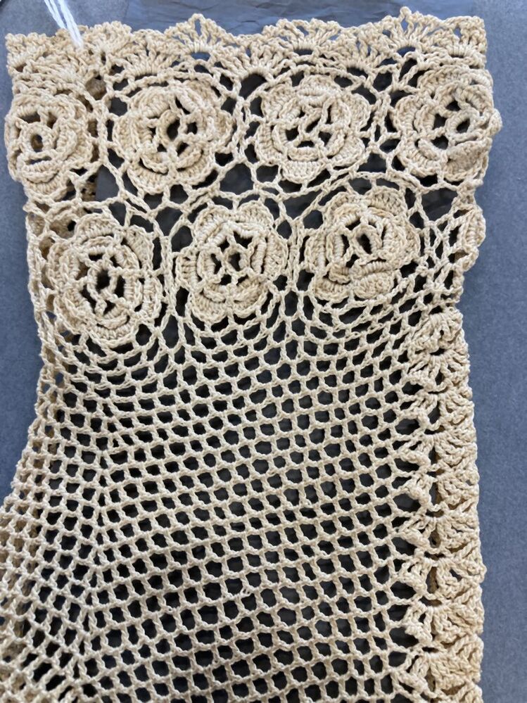 Paar gehaakte crème katoenen dameshandschoenen met o...