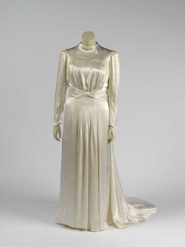 Trouwjapon met aangeknipte mouw gerimpelde rok, afge...