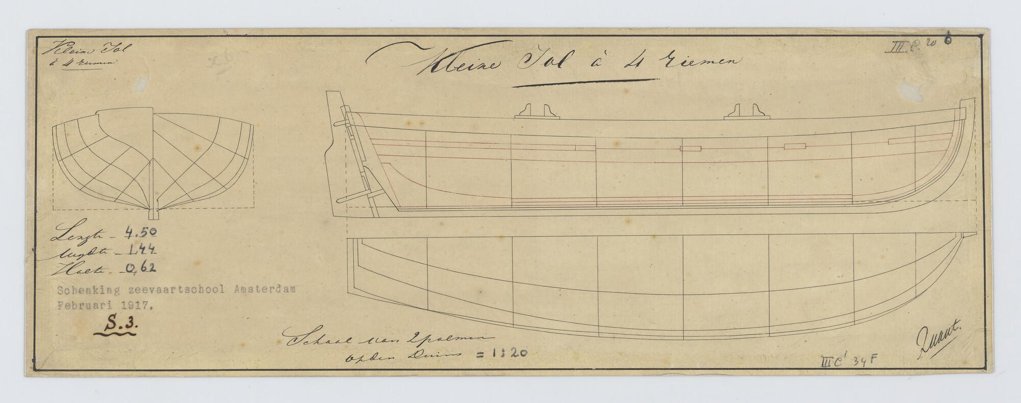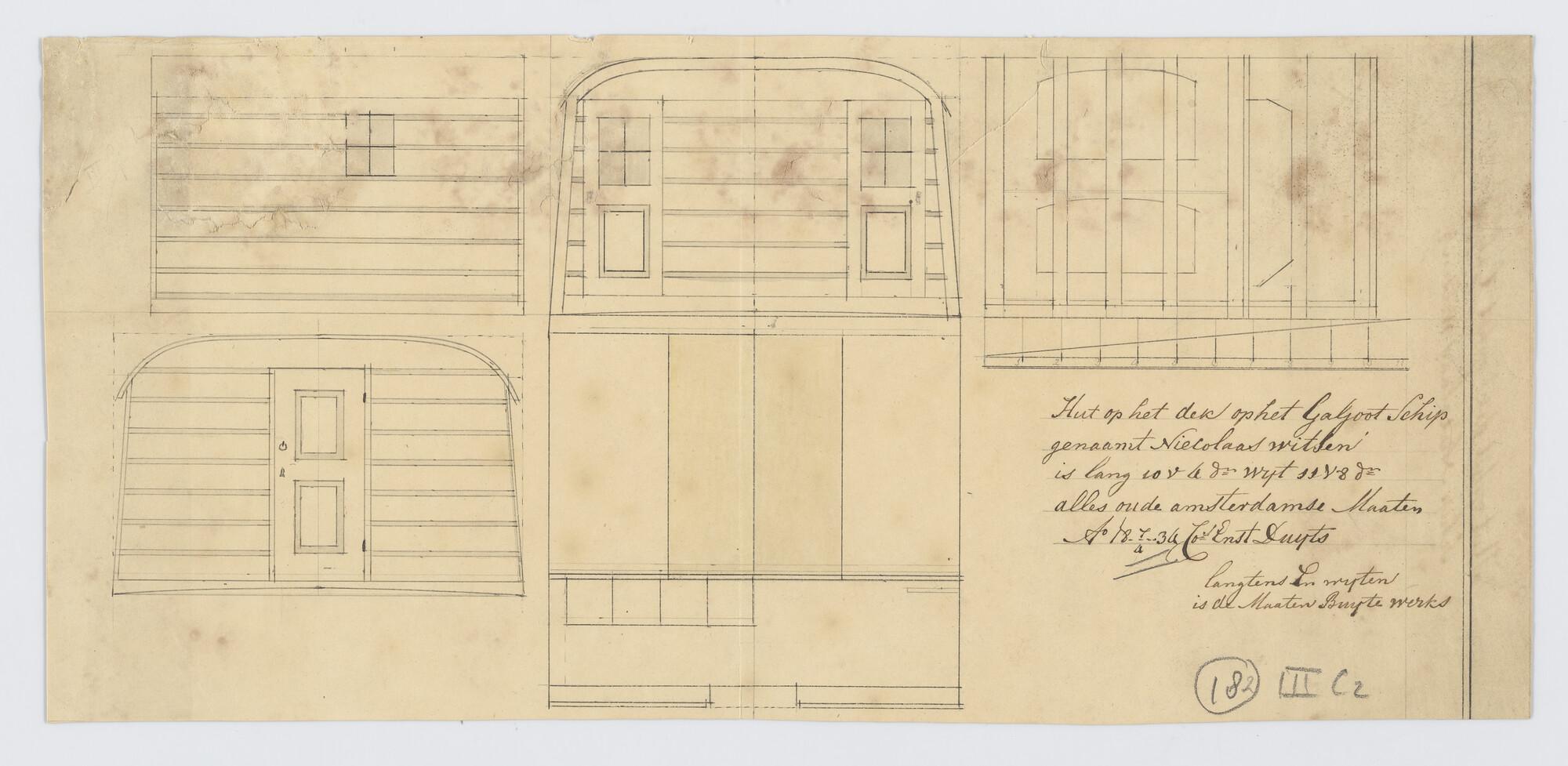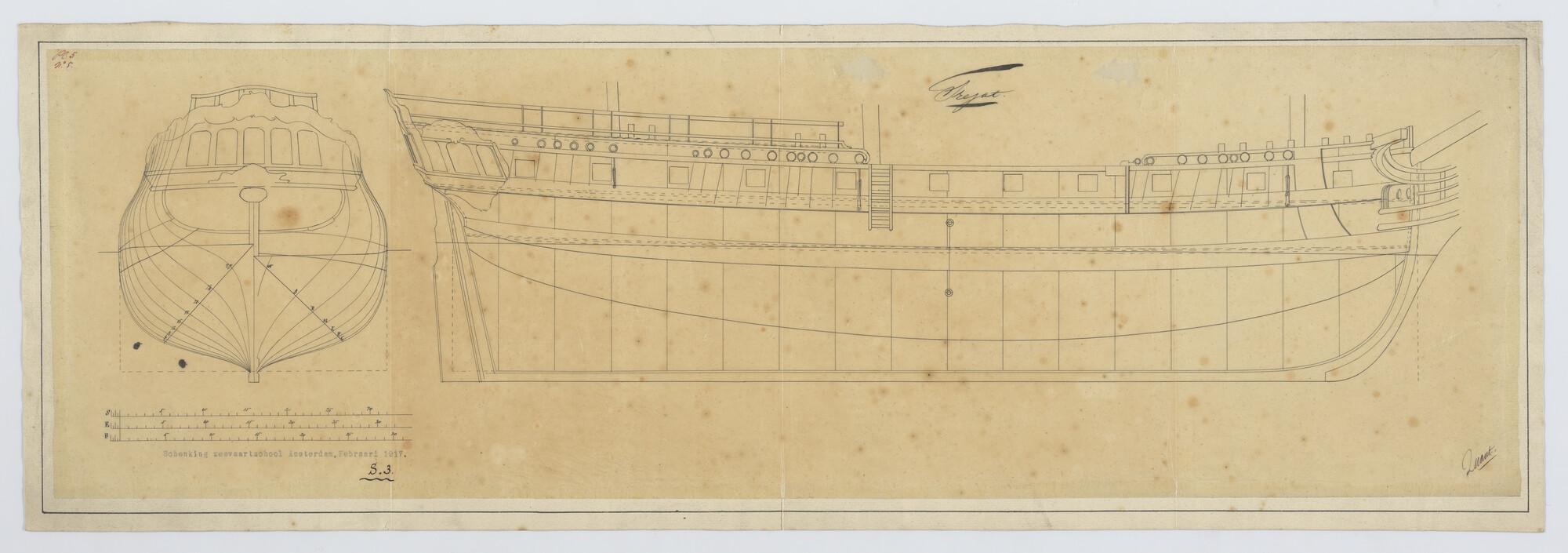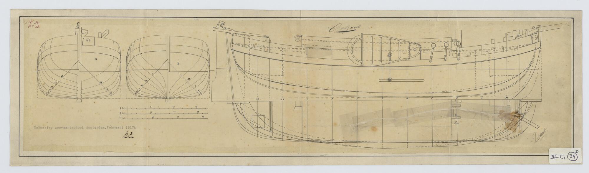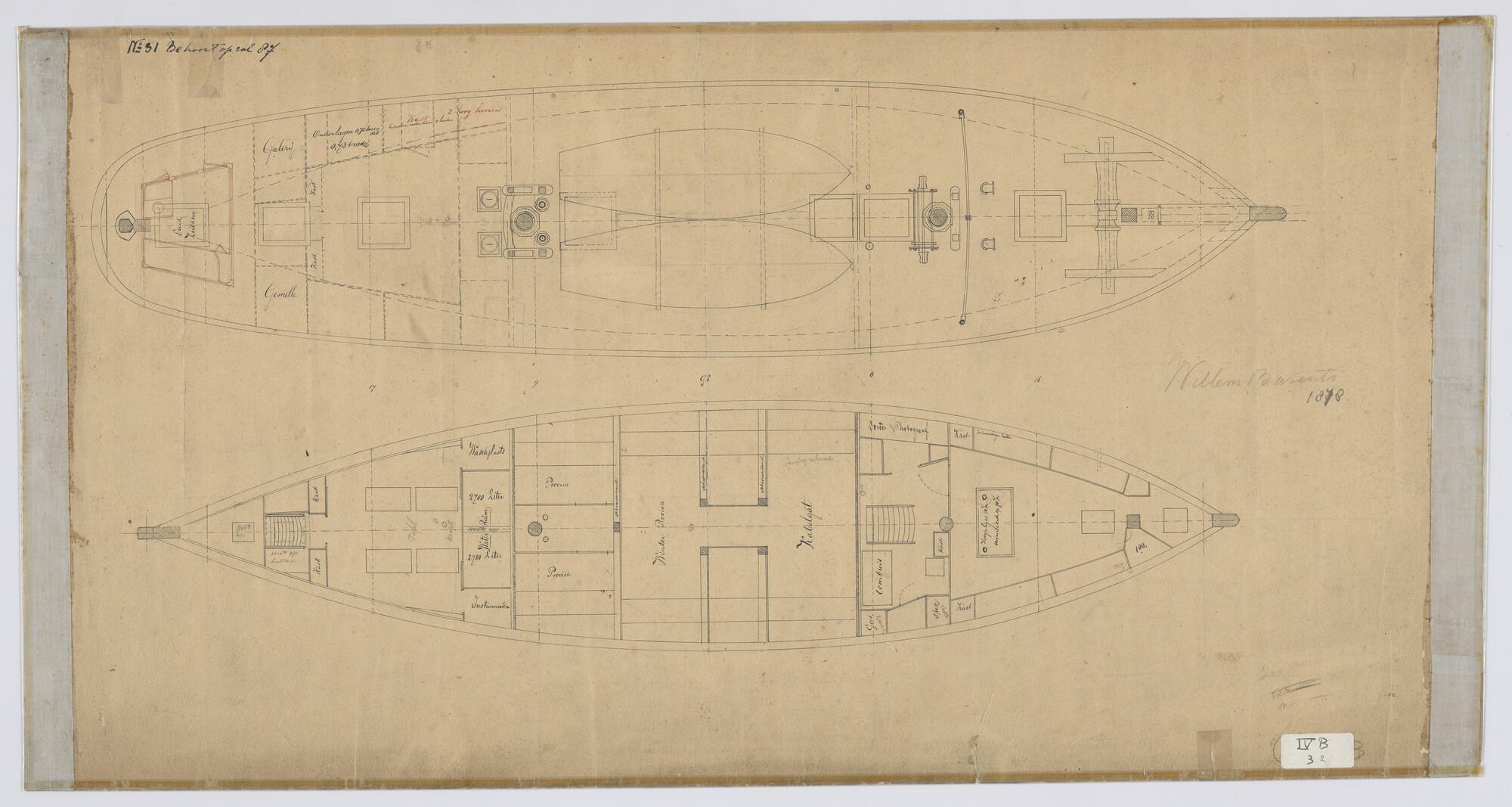 Lijnenplan van de galjoot 'Nicolaas Witsen'.