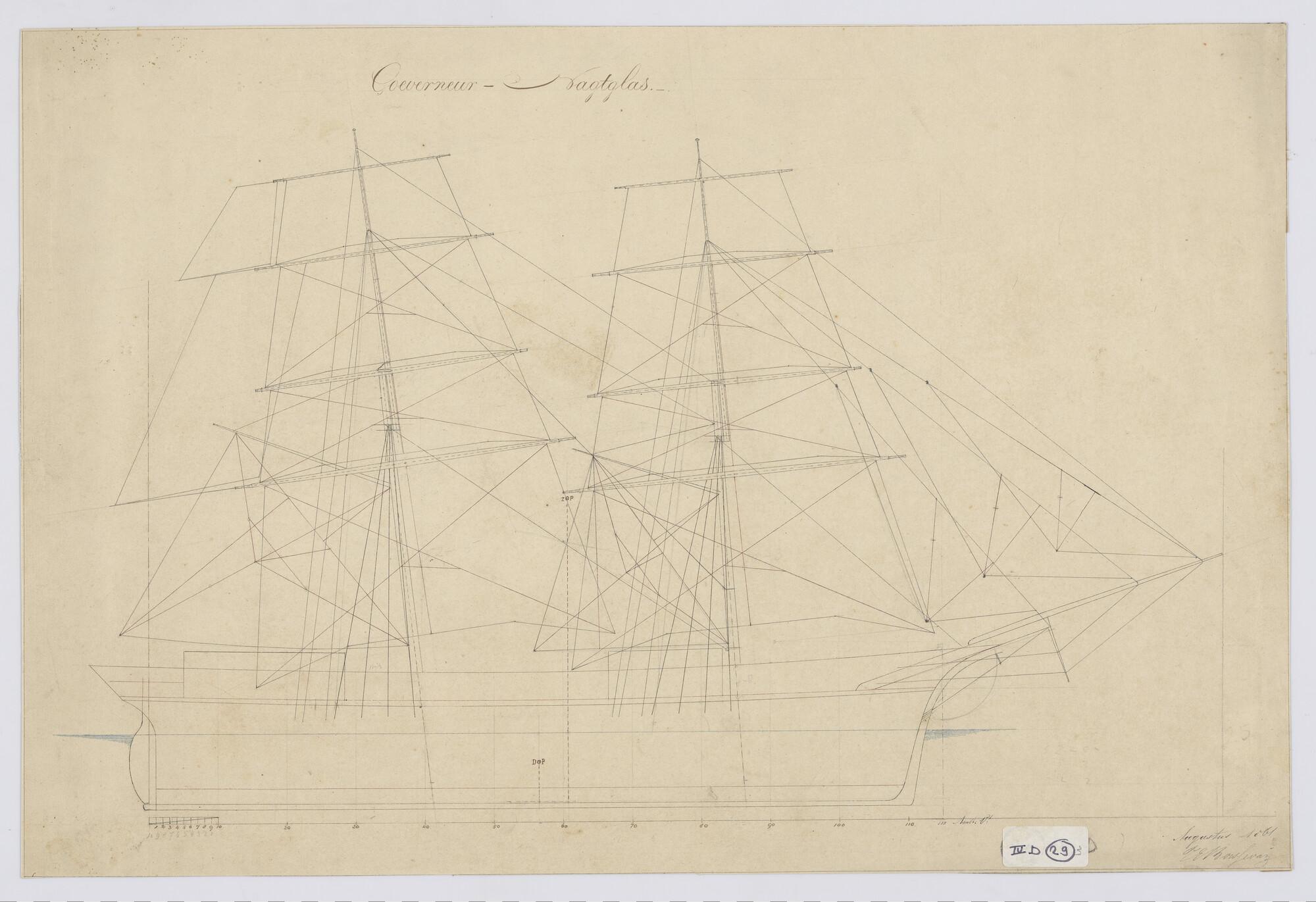 Tuigtekening van de brik "Gouverneur Nagtglas".