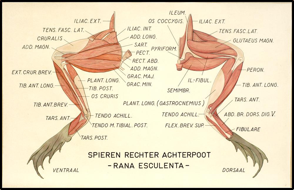 Spieren van de rechterachterpoot van Rana esculenta ...