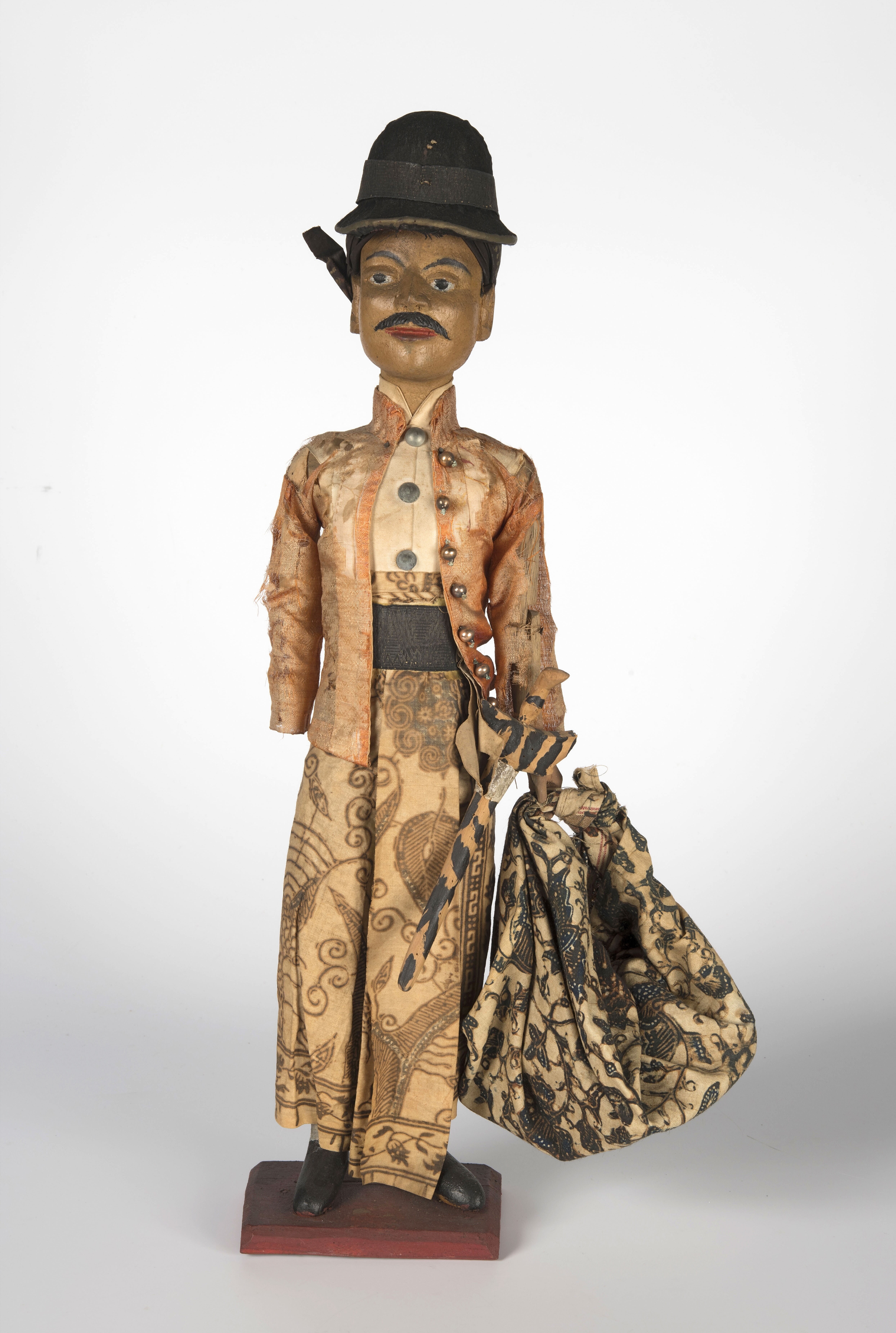 Houten wajangpop voorstellende Prabu Giling Wesi