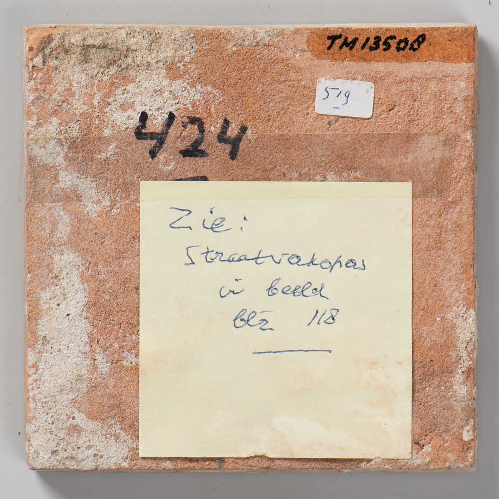 tegel van aardewerk met tinglazuur, voorstellende: t...