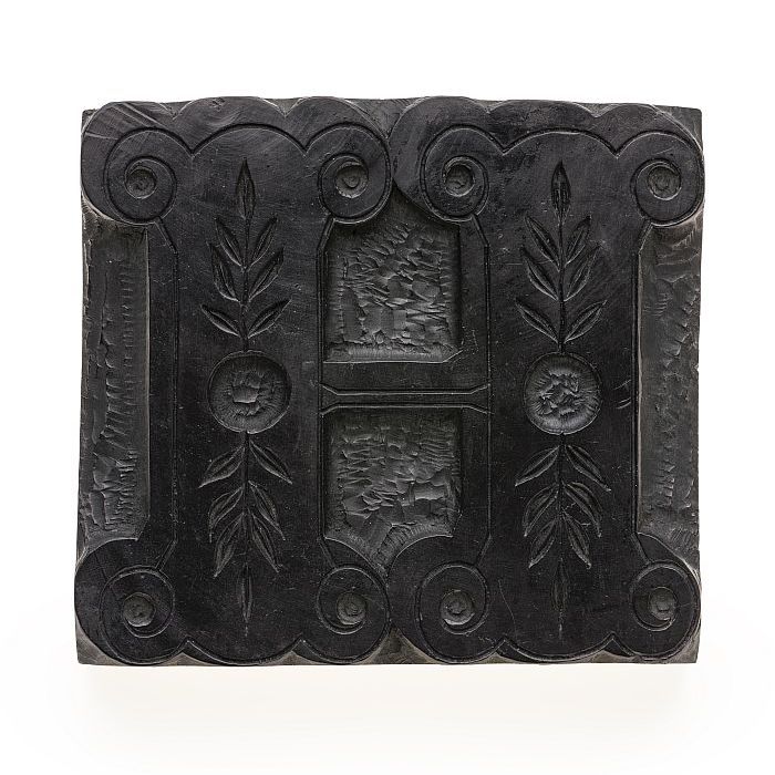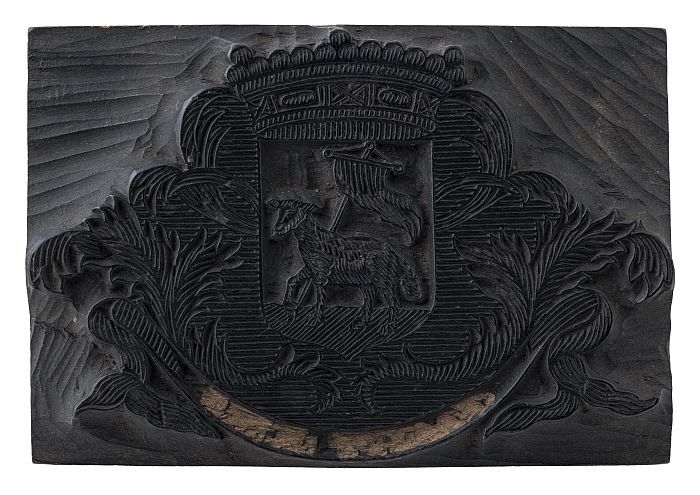 Houten cliché voor het gekroonde wapen van Vlaarding...