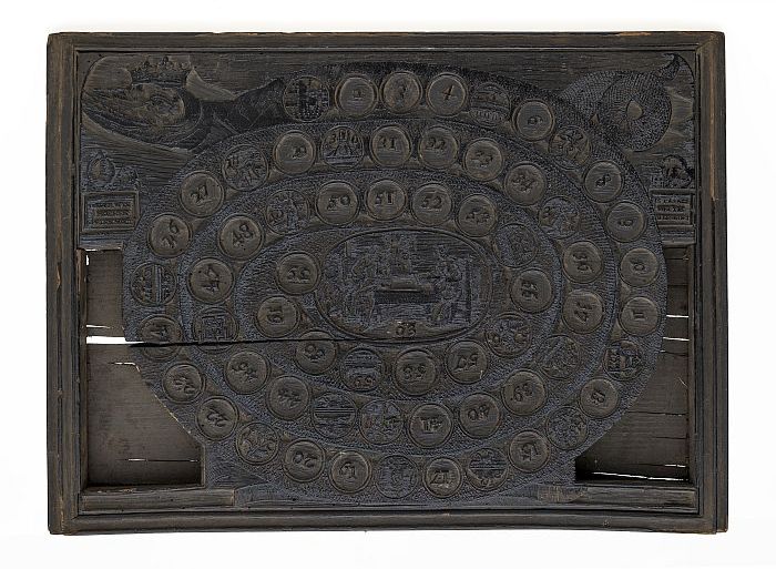 Houten cliché voor ganzenbordspel in de vorm van een...
