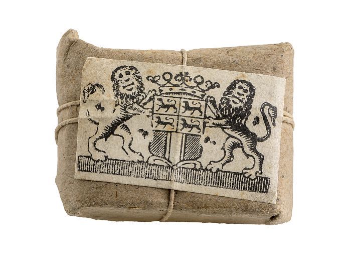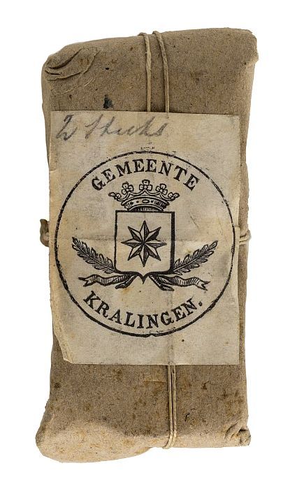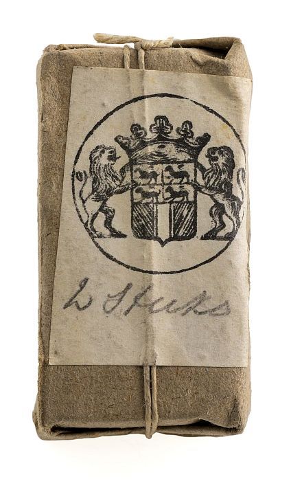 Houten cliché voor het wapen van Rotterdam, ingepakt...