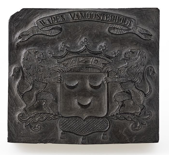 Houten cliché voor het gekroonde wapen van Oosterhou...