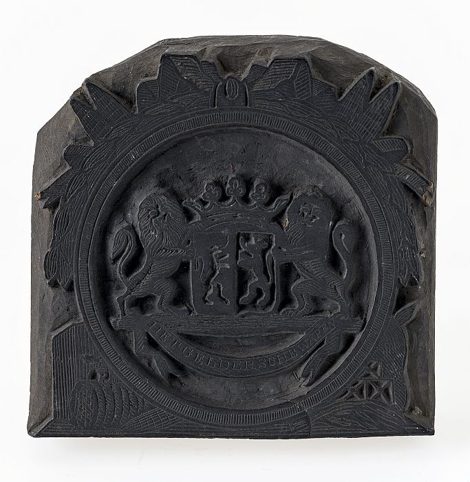 Houten cliché voor het gekroonde wapen van Mijdrecht...