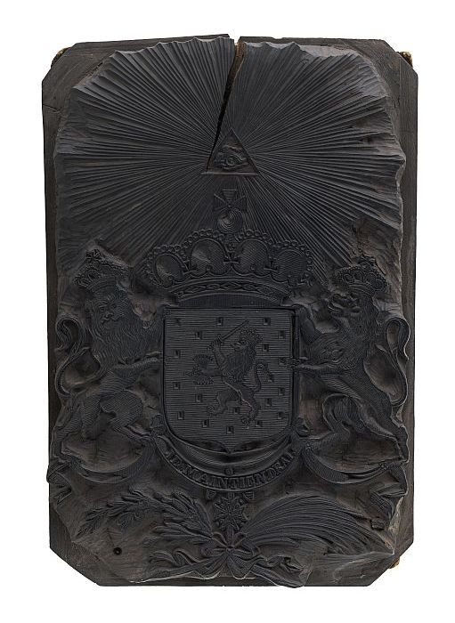 Houten cliché voor het wapen van het Koninkrijk der ...