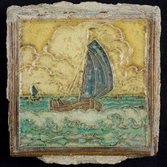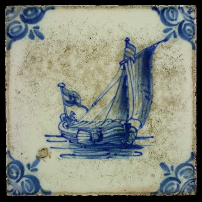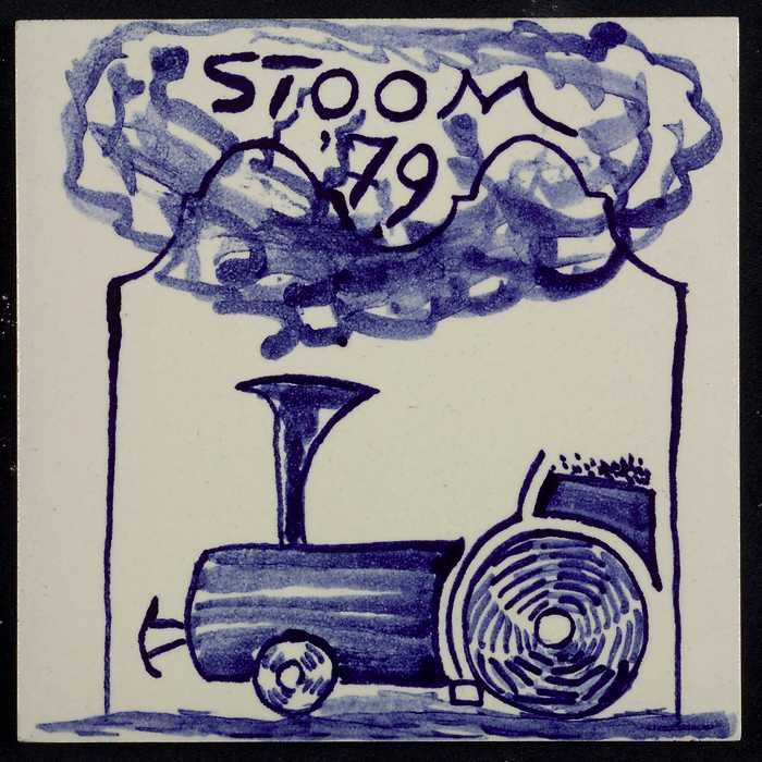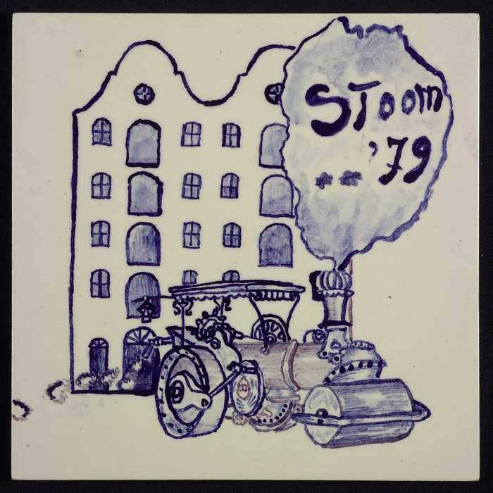 Blauwe tegel met stoomwals voor De Dubbelde Palmboom...