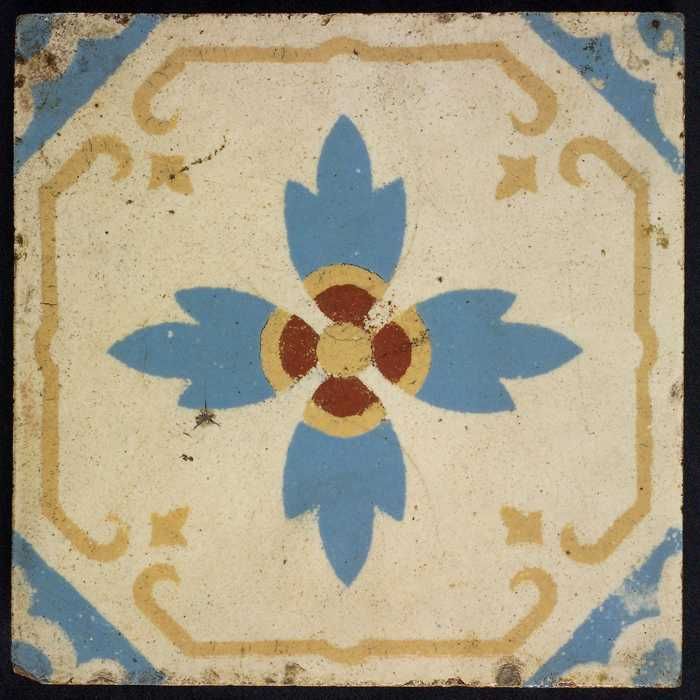 Vloertegel met bloemmotief in centrum, accolade rand...