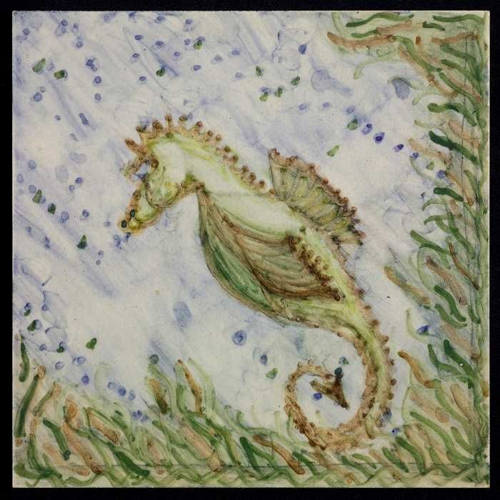 Tegel met afbeelding van zeepaard in zee, in groen, ...