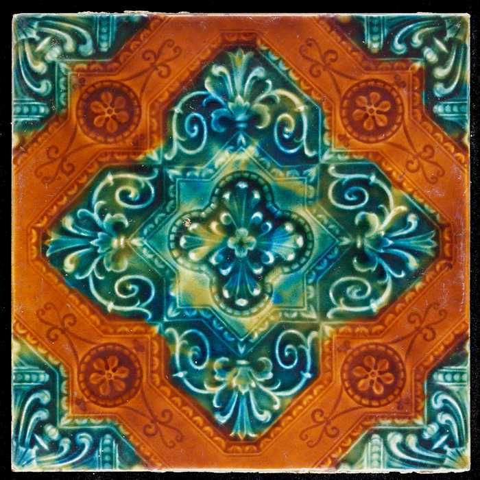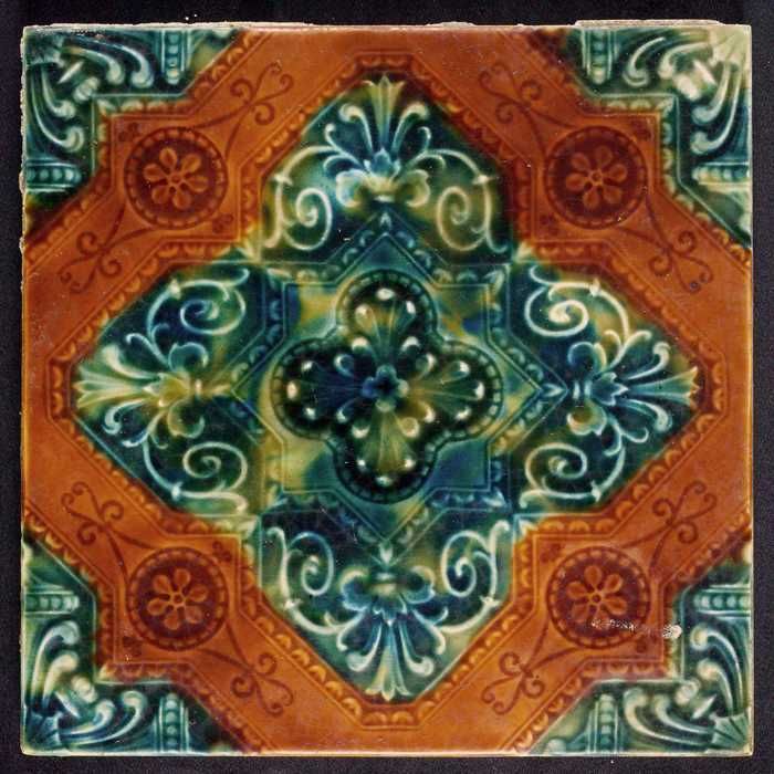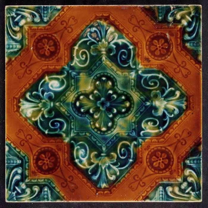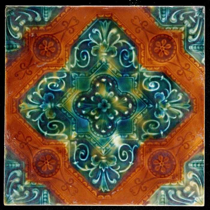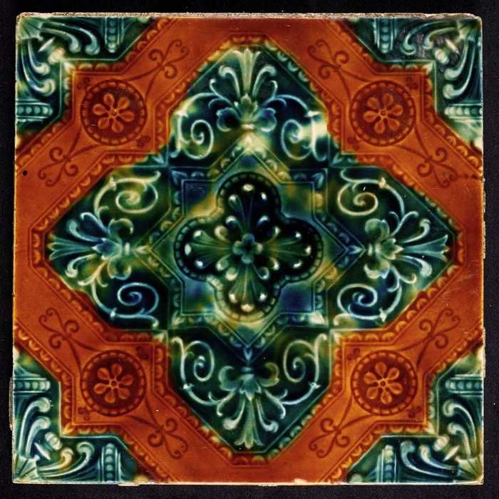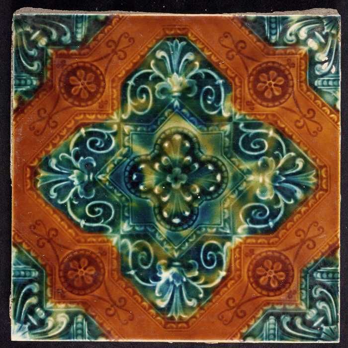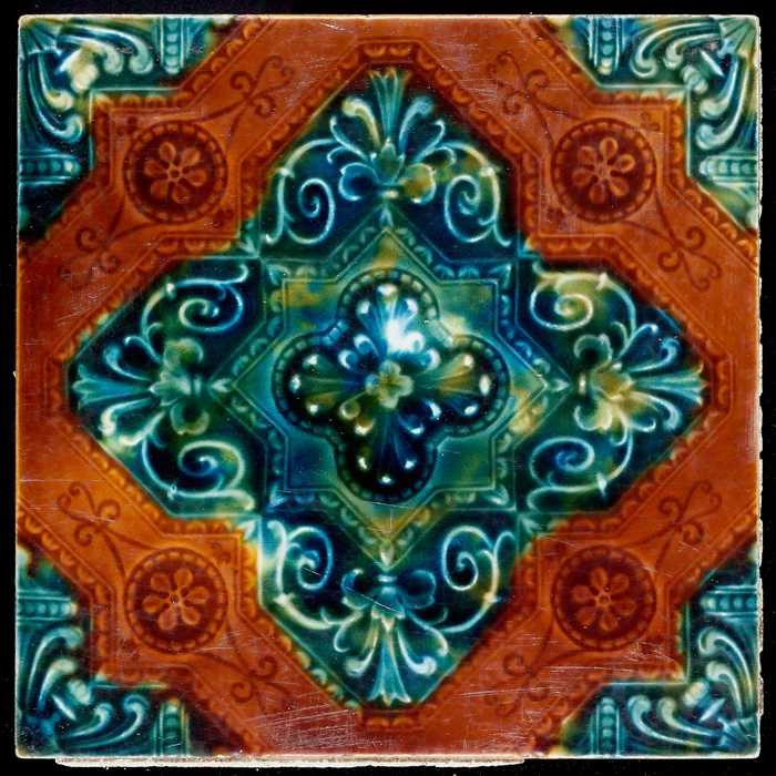 Ornamenttegel in reliëf, geometrische figuren, bloem...