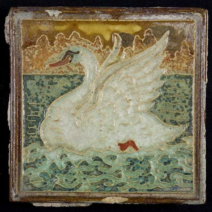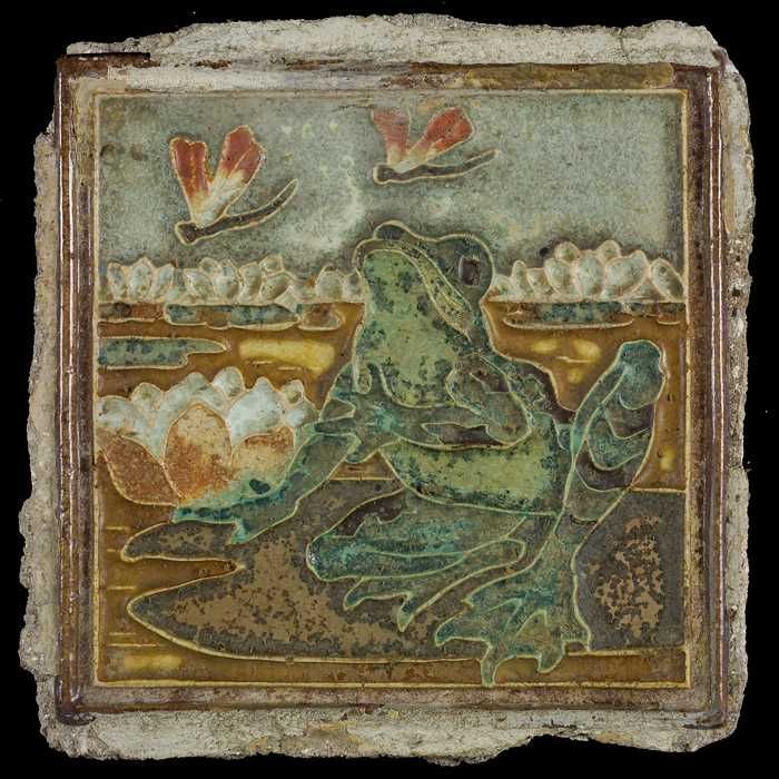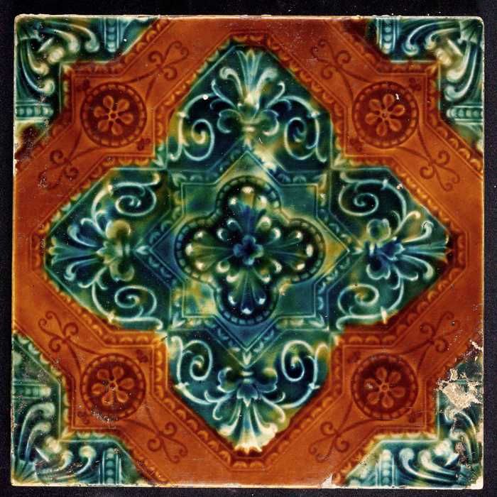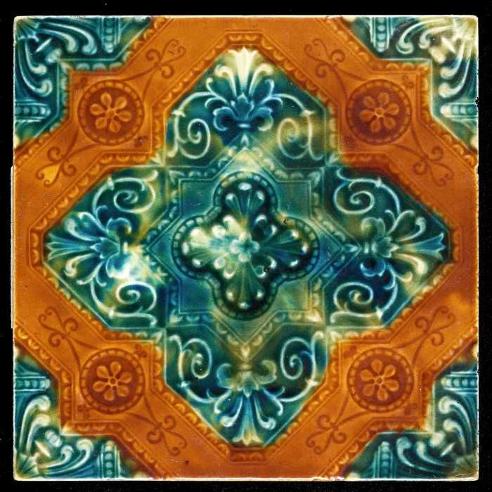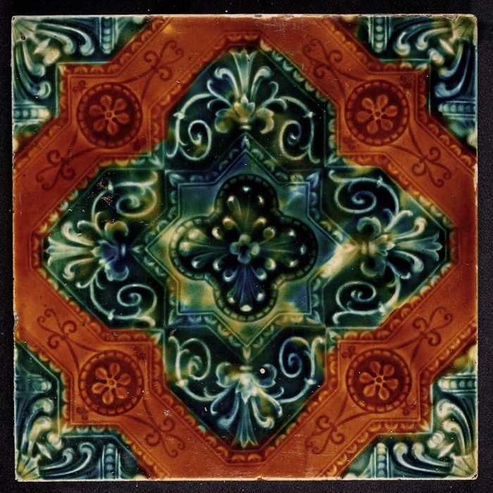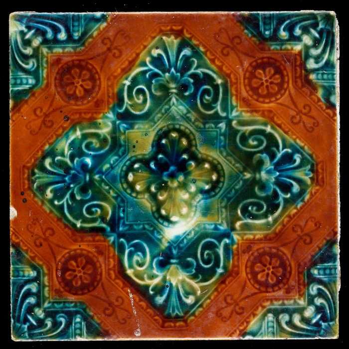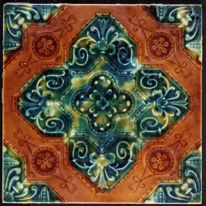 Ornamenttegel in reliëf, geometrische figuren, bloem...