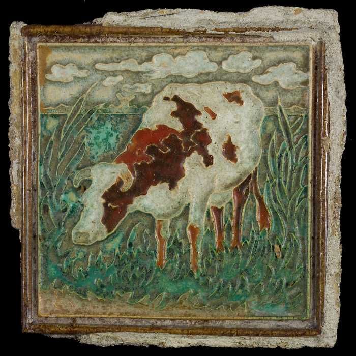 Tafereeltegel, platbodem, hoekmotief ossenkop