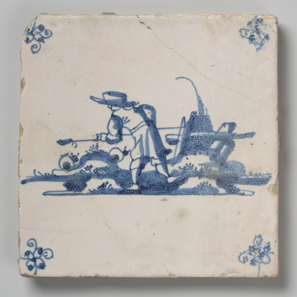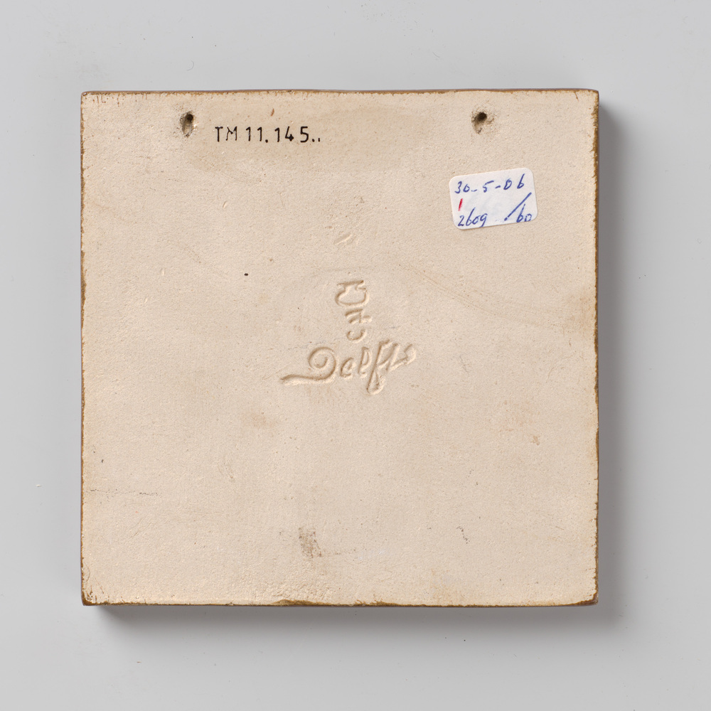 tegel van aardewerk met tinglazuur, voorstellende: l...