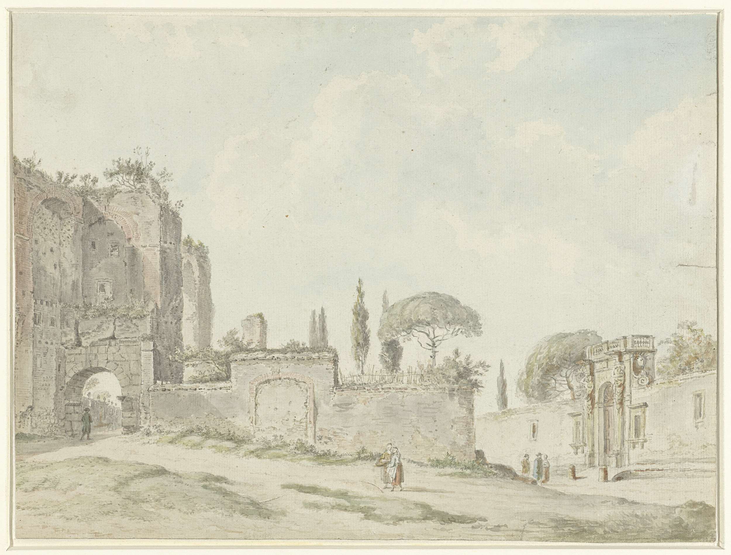 Studieblad met ruiters, staande en lopende figuren e...